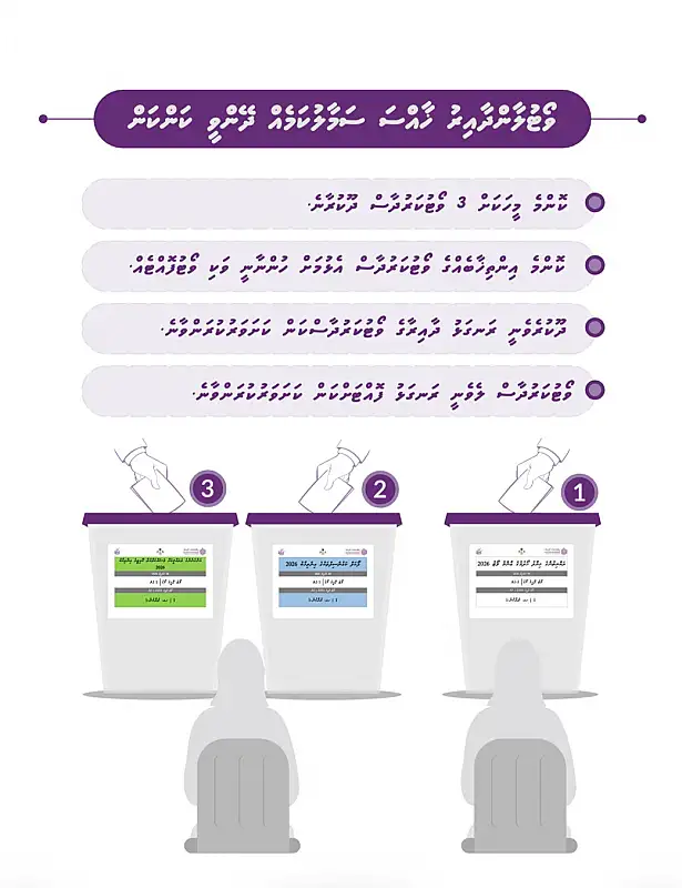ވޯޓުލުމުގެ އެންމެހައި މަރުހަލާތައް ރޭވިފައިވަނީ ވޯޓުގެ ސިއްރުކަން އެއްވެސް މިންވަރަކަށް ނުގެއްލޭނެފަދަ ހަރުދަނާ އުސޫލުތަކެއްގެ މަތިން ކަމަށާއި މަޖެހިފައިވާގޮތަށް ކޮންމެ މީހަކަށްވެސް ތިން ކަރުދާސް އެމީހަކު ބޭނުންވާގޮތަކަށް ވޯޓުލުމަށް ދޫކުރާނެ ކަމަށް ބުންޏެވެ.