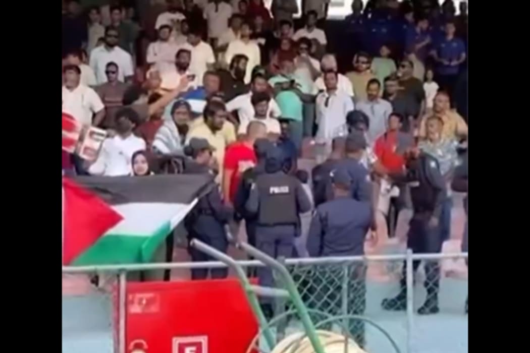 ފީފާގެ ރައީސް ޖިއާނީ އިންފަންޓީނޯ އާއި ރާއްޖޭގެ ރައީސް މުހައްމަދު މުއިއްޒު ބައިވެރިވެވަޑައިގެންނެވި ހާއްސަ ފުޓްބޯޅަ މެޗާއި ދިމާކޮށް، ފީފާއިން އިޒްރޭލު ބޭން ކުރުަމށް ގޮވާލި މީހަކަށް ފުލުހުން ހުރަސް އަޅައި އޭނާ ގަލޮޅު ދަނޑުން ނެރެފި އެވެ.