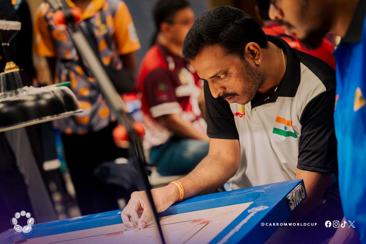މުބާރާތުގައި މިއަދު އިންޑިއާގެ ޕެއާ އާއި ރާއްޖޭގެ ޕެއާ އިން ކުޅުނު މެޗެއްގެ ތެެރެއިން.--- ފޮޓޯ: ކެރަމް ވޯލްޑް ކަޕް/ ފޭސްބުކް