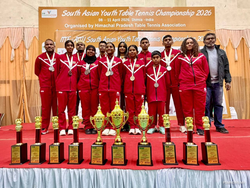 ސައުތު އޭޝިއަން ޔޫތު ޓޭބަލް ޓެނިސް ޗެމްޕިއަންޝިޕް 2026 ގައި ވާދަކުރި ރާއްޖޭގެ ޒުވާން ޤައުމީ ޓީޓީ ޓީމުން 3 ރިހިމެޑަލް އަދި ހަތަރު ލޯ މެޑަލް ހޯދައިފިއެވެ.