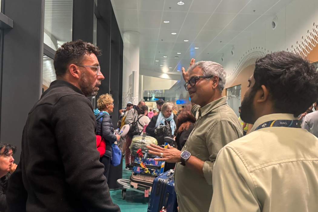 ވެލާނާ އެއާޕޯޓުގައި ތާށިވެފައި ތިބި ޓޫރިސްޓުންނާ ބައްދަލުކުރައްވަން އެ ވަގުތު އެއާޕޯޓުގައި ހުންނެވި ތޯރިގު އެ ތަނުގައި ތިބި ނޫސްވެރިންނާ ވާހަކަ ދައްކަވަމުން ވިދާޅުވީ އަށް ފްލައިޓެއް ކެންސަލްވެ، ދެ ފްލައިޓެއް ނުފުރިފައި އެބައޮތް ކަމަށެވެ.