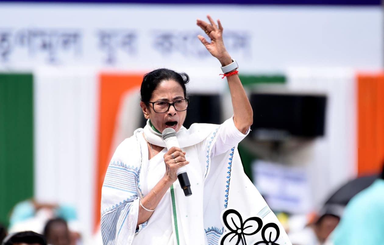އިންޑިއާގެ ސިޔާސީ ރެލީއެއްގެ ތެރެއިން މަމްތާ ބެނަޖީ ވާަހަކަ ދައްކަވަނީ.