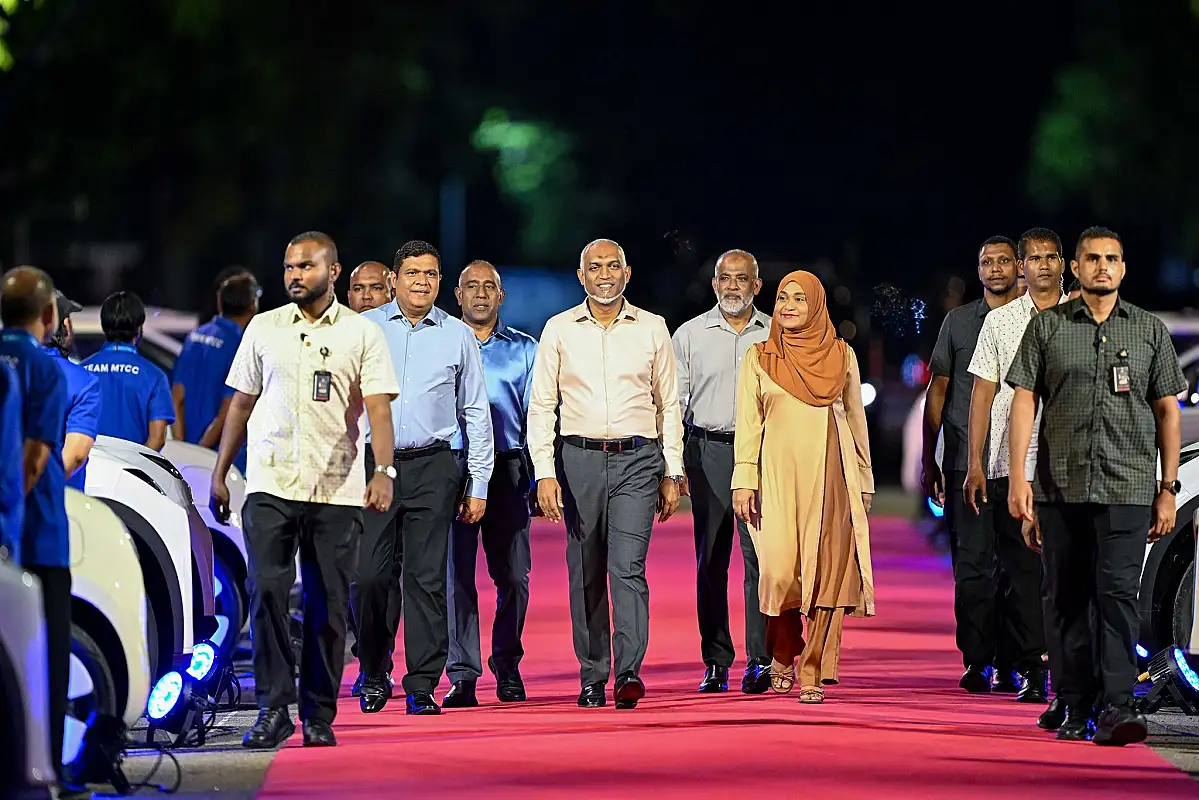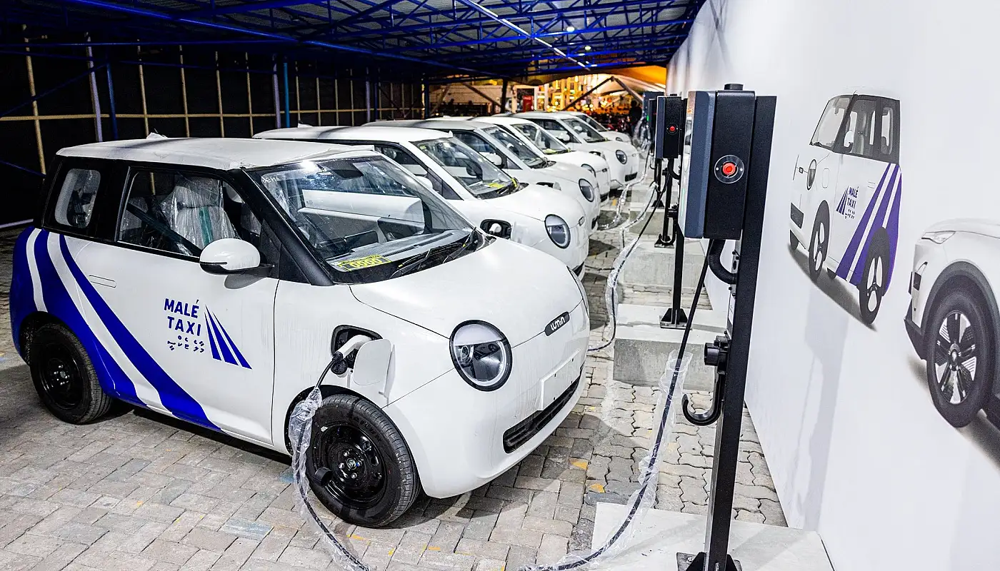 ވީ ކިހިނެއް؟ - ޓްރާންސްޕޯޓް މިނިސްޓަރު އަމީން މި ކަން އިއުލާން ކުރެއްވީ އެމްޓީސީސީން ގެނައި 150 އިލެކްޓްރިކް ކާރާ އެކު މާލެ ސަރަހައްދުގައި ސަރުކާރުގެ ޓެކްސީ ލައިނުގެ ހިދުމަތް ފަށަން ހުޅުމާލެ ސެންޓްރަލް ޕާކްގައި ބޭއްވި ރަސްމިއްޔާތުގަ އެވެ.