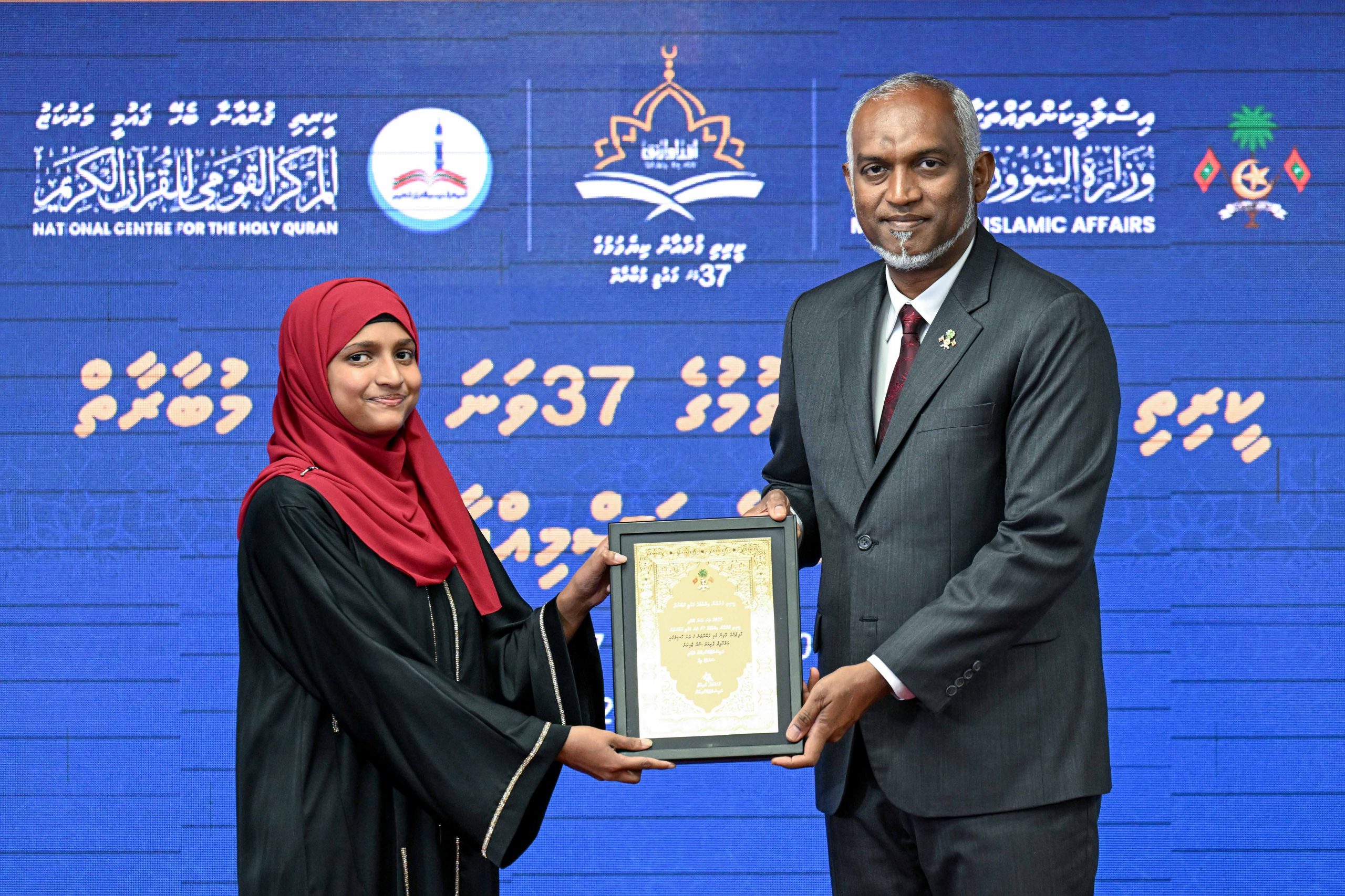 ކީރިތި ޤުރުއާން ކިޔެވުމުގެ 37 ވަނަ ގައުމީ މުބާރާތުގެ ފަހުރުވެރި ރަންވަނަތައް ފާތުމަތު ޝާޔާ ޒާހިރާއި އައިޝަތު ޝަބާ އަދި އަހްމަދު ޝައިމް ރިޒާއަށް ލިބިއްޖެއެވެ.