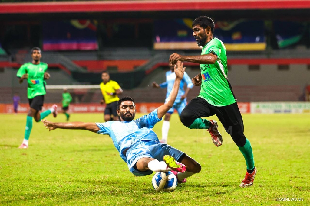 ރަސްމީ ބޯޅަދަނޑުގައި ކުޅުނު މެޗުގައި ދެޓީމުގެ ފަރާތުން ވާދަވެރި ކުޅުމެއް ފެނިގެންދިޔައިރު ޖޭޖޭ އިން ލަނޑުޖަހާ ލީޑު ނެގީ ލިބުނު ޕެނެލްޓީއަކުންނެވެ. މިއީ ލެގޫންސްގެ ސައްދާމް ހުސެއިން އޭރިއާ ތެރެއިން ކުރި ފައުލަކަށް ދިން ޕެނެލްޓީއެކެވެ. މެޗުގެ 6 ވަނަ މިނިޓުގައި މި ޕެނެލްޓީ ގޯލަށް ވައްދާލީ ބިދޭސީ ކުޅުންތެރިއާ މުހައްމަދު ޝަރީބް ރަޒޫނިއާއެވެ.