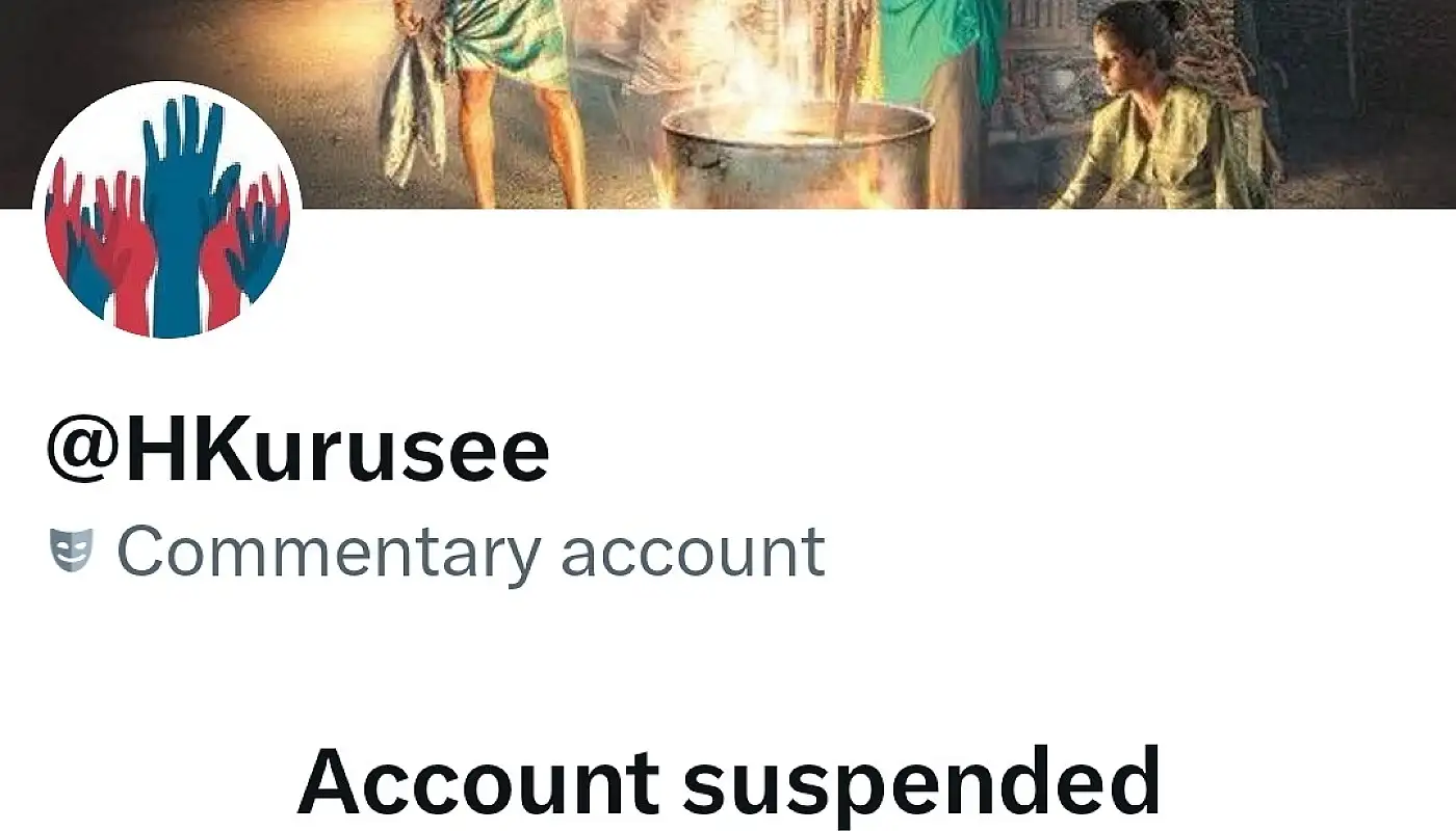 އެކްސްއިން އެ އެކައުންޓް މިހާރު ވަނީ ސަސްޕެންޑްކޮށްފަ އެވެ. ކާކުކަން ނޭނގޭ ހަސަން ކުރުސީ ބުނާ ގޮތުން އެ ފިޔަވަޅު އެޅީ ދިވެހި ފުލުހުން ރަސްމީކޮށް އެކްސްއަށް ހުށައެޅި "ދޮގު ސިޓީއަކާ" ގުޅިގެންނެވެ.