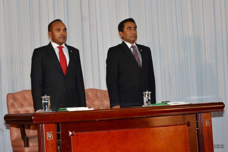 ނައިބް ރައީސް ވިދާޅުވީ ދިވެހި ގައުމުގެ އެންމެ އިސް ދެ މަގާމަށް 2013 ވަނަ އަހަރު ރައްޔިތުން ވޯޓް ދިނީ ރައީސުލްޖުމްހޫރިއްޔާގެ ނަންފުޅާ އެމަނިކުފާނުގެ ނަންފުޅަށްވެސް ބަލާފައި ކަމަށާ ނަމަވެސް މިއަދު ރައްޔިތުންގެ މަންދޫބުންގެ ގޮތުގައި ތިބި ބަޔަކު މަސައްކަތް މިކުރަނީ ރައްޔިތުންގެ އެޙައްޤު ނިގުޅައިގަތުމަށް ކަމަށެވެ. އަދި މިއީ ބަޔަކު ރާވައިގެން ކުރަމުން ގެންދާ ކަމެއްކަމުގައިވެސް ތުހުމަތު ކުރެއްވި އެވެ.