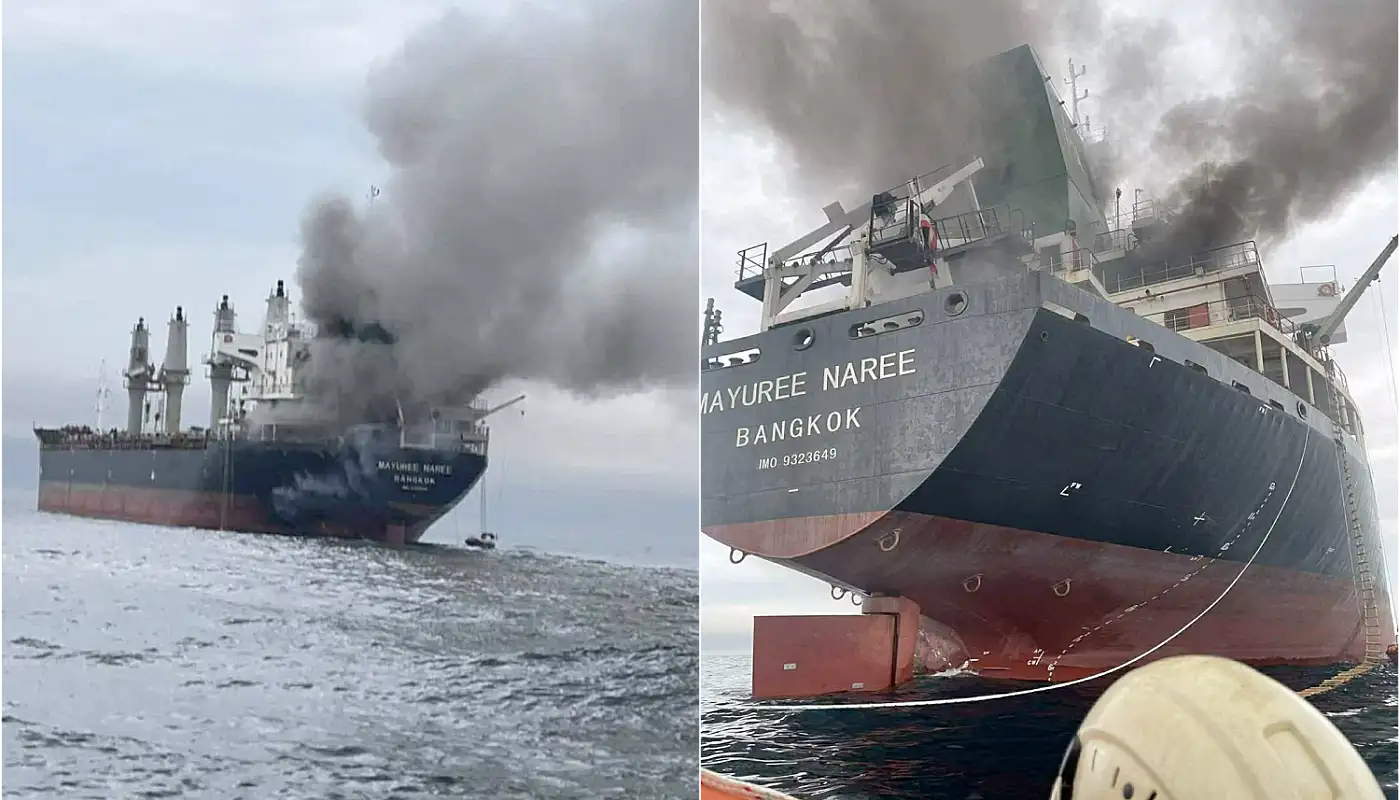 ތައިލެންޑްގެ ދިދަ ޖަހާފައިވާ މަޔޫރީ ނާރީ ނަމަކަށް ކިޔާ މުދާ އުފުލާ ބޯޓަށް ހަމަލާދީފައިވަނީ އޮމާންގެ އުތުރުން ގާތްގަނޑަކަށް 11 ނޯޓިކަލް މޭލު ބޭރުންނެވެ. މި ހަމަލާގެ ސަބަބުން ބޯޓުގައި އަލިފާން ރޯވުމާ ގުޅިގެން، ބޯޓުގެ ގިނަ ފަޅުވެރިން ވަނީ ރައްކާތެރިކަމަށްޓަކައި ބޯޓުން ބާލާފަ އެވެ.