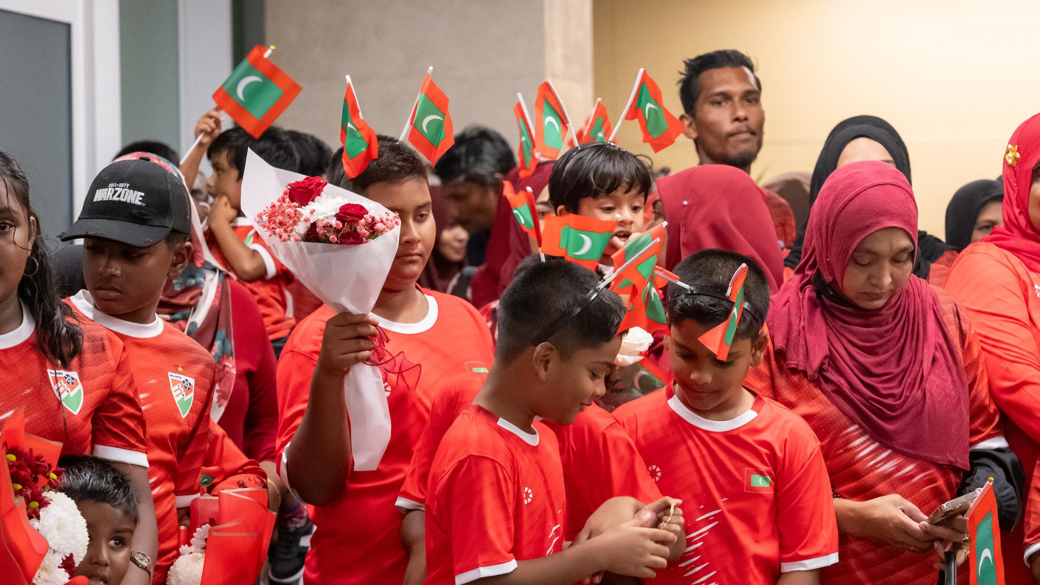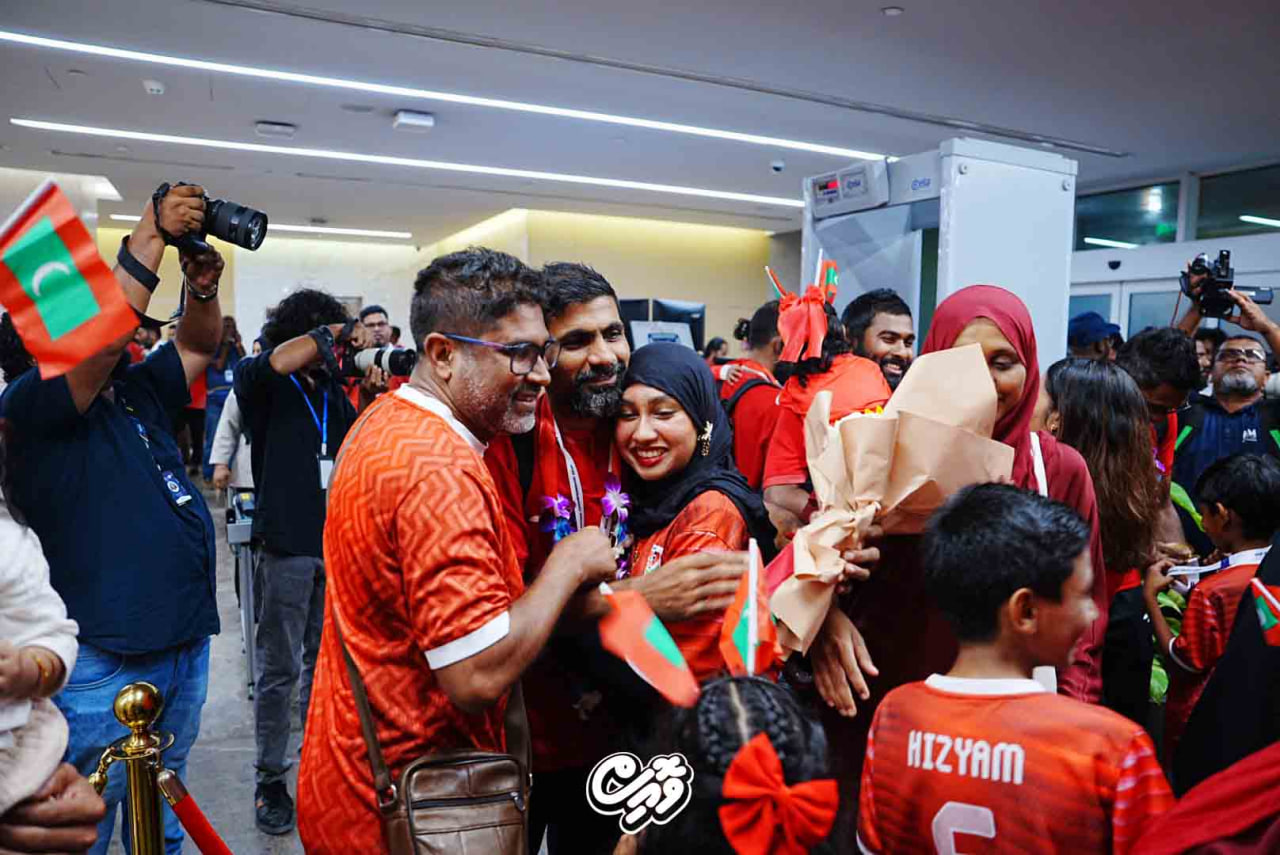 ފުޓްސަލްޓީމް ރާއްޖެ އައުމުން ޓީމަށް އެންމެފުރަތަމަ މަރުހަބާ ދެންނެވީ ކުޅިވަރާ ބެހޭ ވަޒީރު ޢަބްދުﷲ ރާފިޢު އާއި ފުޓްބޯލް އެސޯސިއޭޝަން އޮފް މޯލްޑިވްސް (އެފްއޭއެމް)ގެ ރައީސް އަޙްމަދު ޠާރިޤްއެވެ. މީގެ އިތުރުން ކުޅުންތެރިންގެ އާއިލާއިންވެސް ވަނީ، ވީއައިއޭގެ ވިއައިޕީ ލައުންޖުން ކުޅުންތެރިންނަށް މަރުހަބާކިޔާފައެވެ.