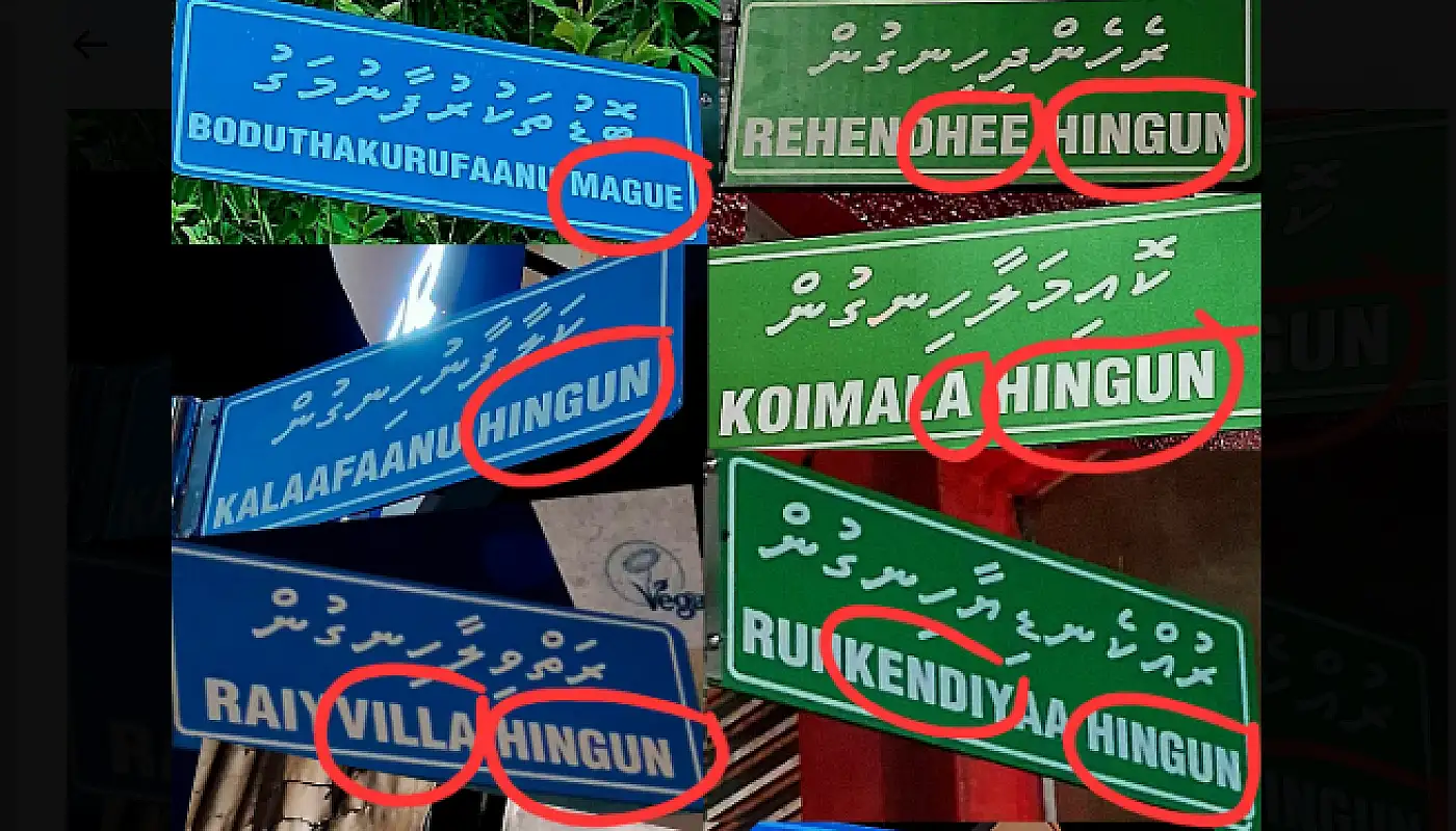 މާލޭ ސިޓީ ކައުންސިލުން ހަރުކުރި ނަން ބޯޑުތަކުގައި، މަގުތަކުގެ ނަން ލިޔެފައިވާ ގޮތުން ގިނަ ބަޔަކު ދަނީ ކަންބޮޑުވުން ފާޅުކުރަމުންނެވެ. ބައެއް ނަންތައް ތާނައިން ނުބައިކޮށް ލިޔެފައި ހުރި އިރު، ބައެއް ނަންތައް ލެޓިނުން ވެސް ހުރީ ނުބައިކޮށް ލިޔެފަ އެވެ.