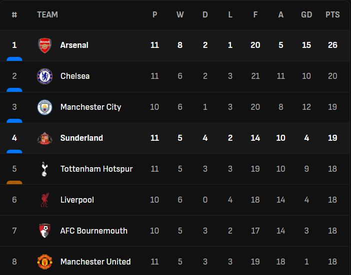 މެޗަށްފަހު ޕްރިމިއާ ލީގް ޕޮއިންޓް ތާވަލް މިހާރު އޮތްގޮތަށް ބަލާއިރު އަދިވެސް ތާވަލްގެ އެއްވަނާގައި އުޅެނީ އާސެނަލެވެ.
