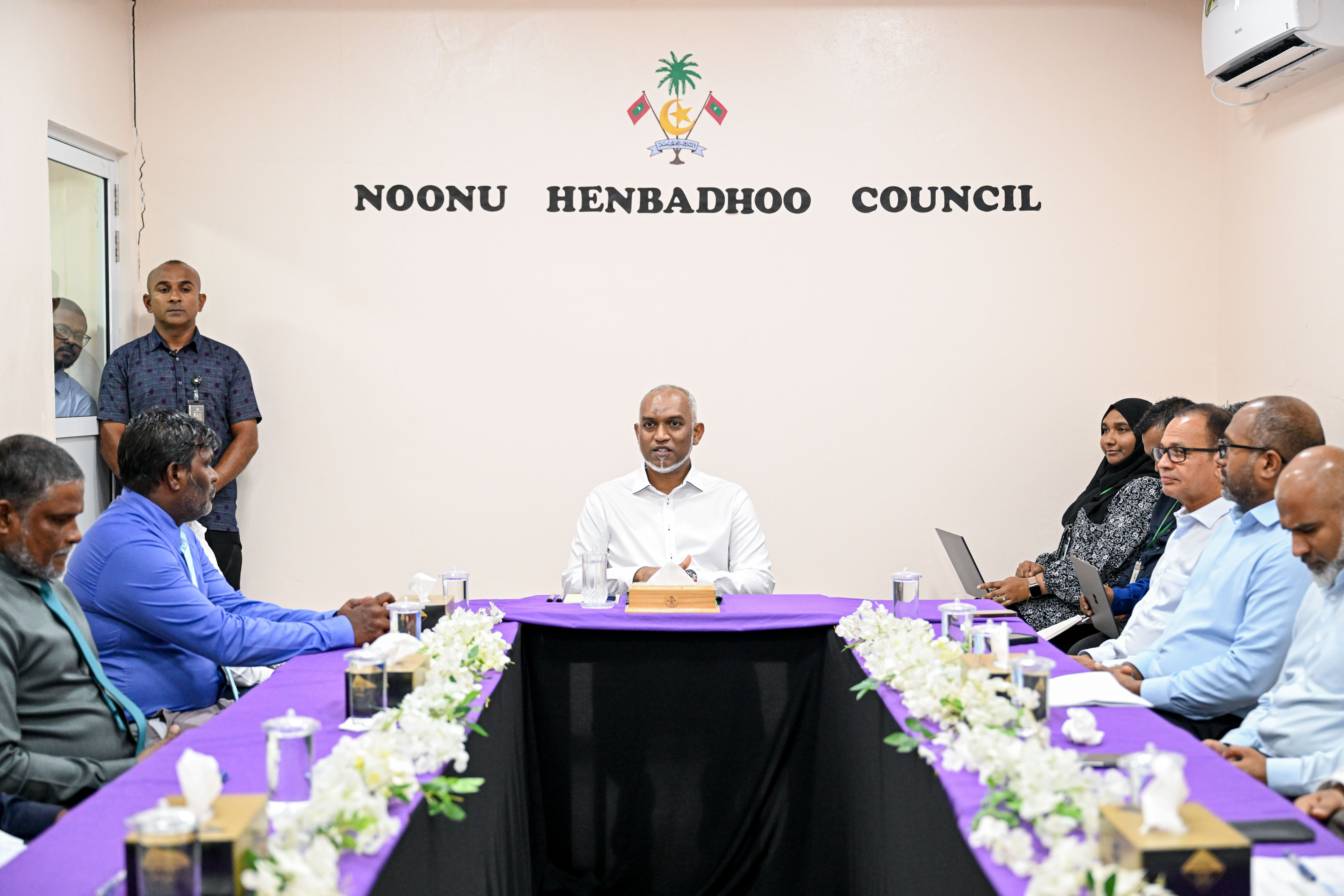 ރައީސުލްޖުމްހޫރިއްޔާ ޑރ. މުޙައްމަދު މުޢިއްޒު ނ. އަތޮޅަށް މިހާރު ކުރައްވަމުން އަންނަ ދަތުރުފުޅުގައި ރައީސް ވަނީ ހެނބަދޫގެ ކައުންސިލާއި، އަންހެނުންގެ ތަރައްޤީއަށް މަސައްކަތްކުރާ ކޮމެޓީގެ އިތުރުން އެ ރަށުގެ މުއައްސަސާ އިސްވެރިންނާއި ބައްދަލުކުރައްވައިފަ އެވެ.