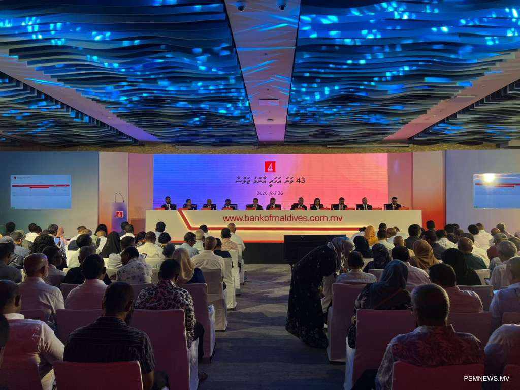 ބޭންކް އޮފް މޯލްޑިވްސް، ބީއެމްއެލްގެ އަހަރީ އާންމު ޖަލްސާގައި 2025 ވަނަ އަހަރުގެ ހިއްސާގެ ފައިދާގެ ގޮތުގައި ހިއްސާއަކަށް 60 ރުފިޔާގެ މަގުން ރެކޯޑު އަދަދެއްކަމަށްވާ ޖުމްލަ 322 މިލިއަން ރުފިޔާ ބެހުމަށް ވަނީ ފާަސްކޮށްފައެވެ.