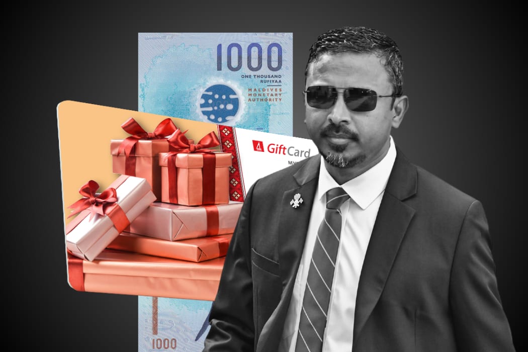 "އެއީ އޭޖީ އަމިއްލަ ގޮތުން ދެއްވި ހަދިޔާއެއް. ކޮންމެ މުވައްޒަފަކަށް ދެއްވީ 1000ރ. ގިފްޓު ކާޑެއް،" އެ އޮފީހުގެ މުވައްޒަފަކު ބުންޏެވެ.