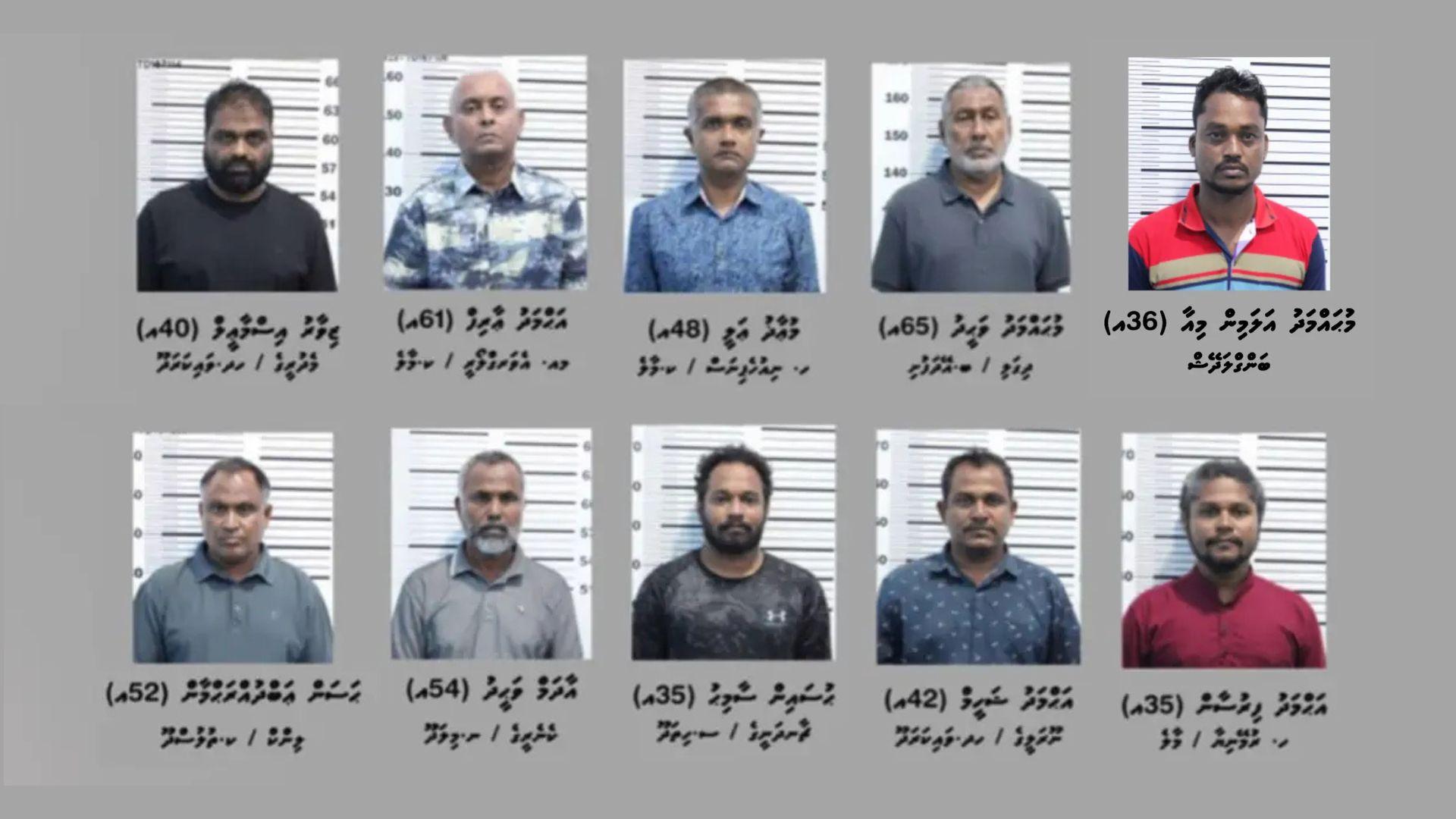 އެގޮތުން ދައުވާ ކުރުމަށް ޕީޖީ އޮފީހުން މިއަދު ކޯޓަށް ހުށަހަޅީ ބ. އޭދަފުށި، ދިގަލި، މުޙައްމަދު ވަޙީދާއި، މއ. އެވަރގްލޯރީ، އަޙްމަދު ޢާރިފާއި، ހ. ނިއުހެޕިނަސް، މުޢާޛު ޢަލީއާއި، ހދ. ވައިކަރަދޫ، މެދުރީގެ، ޒިވާރު އިސްމާޢީލްއާއި، ހދ. ވައިކަރަދޫ، ނޫރަލީގެ، އަޙްމަދު ޝަހީމްއާއި، ހ. ރުމޭނިޔާ، އަޙްމަދު ފިރުސާންއާއި ، ސ. ހިތަދޫ، ޗާނދަނީގެ، ޙުސައިން ސާމިޙުއާއި، ނ. މިލަދޫ، ކެނެރީގެ، އާދަމް ވަޙީދުއާއި ކ. ތުލުސްދޫ، ލިންކް، ޙަސަން ޢަބްދުއްރަޙްމާން، ބަނގުލަދޭޝް، މުޙައްމަދު އަލަމިން މިއާގެ މައްޗަށެވެ.