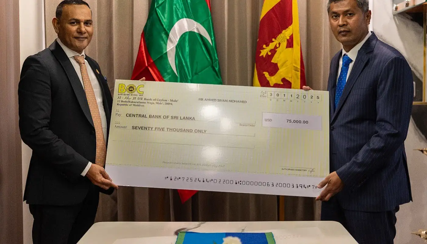 ވީކިިހިނެއް؟ - ލަންކާއިން ރާއްޖެއަށް ކަނޑައަޅާފައި ހުންނަވާ ސަފީރު މުހައްމަދު ރިޒްވީ ހަސަންއާ ސިޔާމް މިއަދު ބައްދަލުކުރައްވައި 75،000 ޑޮލަރު ވަނީ ހަދިޔާކުރައްވައިފަ އެވެ.