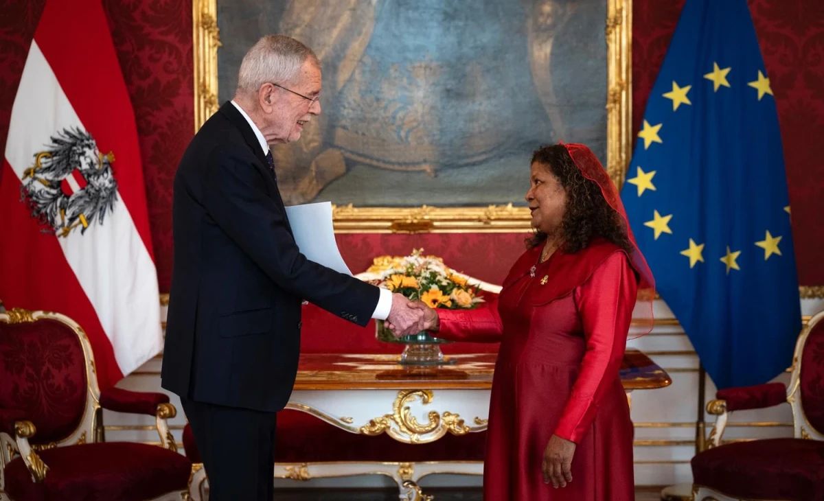 ދިވެހިރާއްޖެއިން އޮސްޓްރިއާއަށް ކަނޑައަޅާފައި ހުންނަވާ ނޮން-ރެސިޑެންޓް ސަފީރު ޑޮކްޓަރ ސަލްމާ ރަޝީދު އެކަމަނާގެ ސަފީރުކަމުގެ ފަތްކޮޅު އޮސްޓްރިއާގެ ރައީސް، އެލެކްސެންޑާ ވޭން ޑަރ ބެލެން އަށް މިއަދު އަރުވައިފި އެވެ.