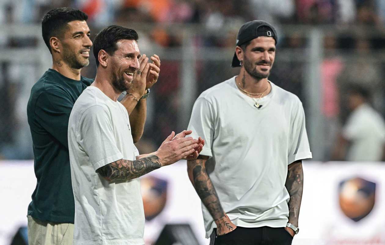 މުމްބާއިގެ ވަންކެޑޭ ސްޓޭޑިއަމްގައި ކުރިއަށްދިޔަ އިވެންޓްގެ ތެރެއިން ޑެ ޕޯލް (ކ) މެސީ (މ) އަދި ސުއަރޭޒް.