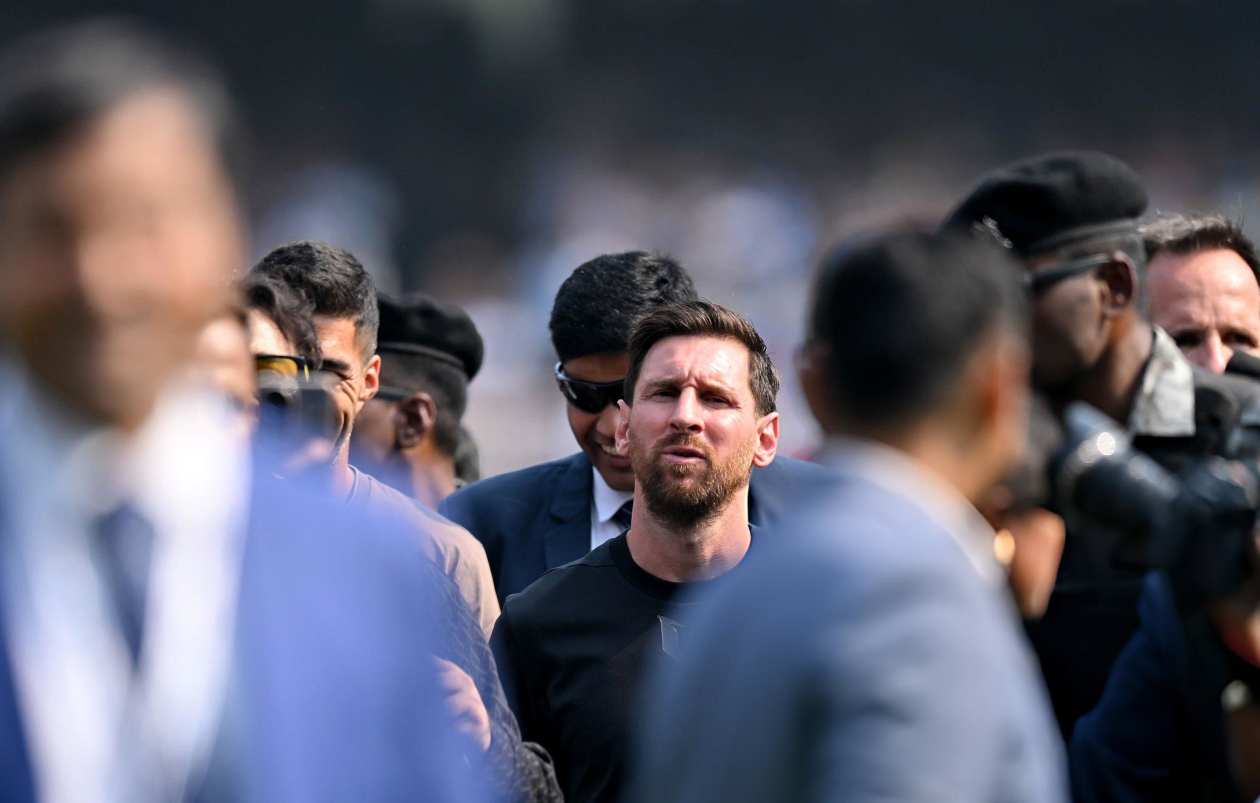 މި ޓުއާގެ އެންމެ ފުރަތަމަ ބައިގެ ތެރެއިން، ކަލްކަތާގެ މަޝްހޫރު ދަނޑު، ސޯލްޓް ލޭކް ސްޓޭޑިއަމްގައި މެސީ އަށް މަރުހަބާ ކިއުމަށް 80،000 އަށް ވުރެން ގިނަ ސަޕޯޓަރުން ދަނޑަށް ވަދެ ތިއްބައި، މެސީ، އެ ދަނޑަށް އައިސް، ބައިގަނޑިއިރު ވެސް ނުވަނިސް ދިއުމުން، ގިނަ ސަޕޯޓަރުންތަކެއްގެ ރުޅިގަނޑު ފަޅައިގެން ގޮސް، ދަނޑަށް އަރައި، ތަކެއްޗަށް ވަނީ ގެއްލުން ދީފަ އެވެ.