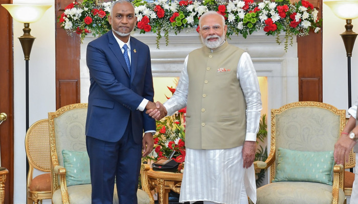 ދިވެހިރާއްޖޭގެ ރައީސުލްޖުމްހޫރިއްޔާ ޑރ. މުޙައްމަދު މުޢިއްޒު، އިންޑިއާގެ ބޮޑުވަޒީވަޒީރު ނަރެންދުރަ މޯދީއާ މިއަދު ރަސްމީ ބައްދަލުވުމެއް ބާއްވަވައިފިއެވެ. މި ބައްދަލުވުން ބޭއްވުނީ އިންޑިއާގެ ވެރިރަށް ނިއު ދިއްލީގައި ހުންނަ ވަޒީރުލްއަޢުޡަމްގެ ރަސްމީ އިމާރާތް ކަމުގައިވާ ހައިދަރުއާބާދު ހައުސްގައުސްގައެވެ.ރައީސް ޑރ. މުޢިއްޒު ވަޑައިގަތުމުން، ބޮޑުވަޒީރު މޯދީ އެމަނިކުފާނަށް ހޫނު މަރުޙަބާއެއް ދެންނެވިއެވެ. މި ބައްދަލުވުމުގައި ދެ ޤައުމުގެ މެދުގައި އޮތް ސިޔާސީ ގުޅުމާއި، އެ ގުޅުން އިތުރަށް ބަދަހިކުރުމާ ބެހޭގޮތުން މަޝްވަރާކުރެއްވިއެވެ.ރައީސް ޑރ. މުޢިއްޒުގެ މި ދަތުރުފުޅަކީ ދިވެހިރާއްޖެއިން އިންޑިއާއަށް ކުރައްވާ ތާރީޚީ ދަތުރުފުޅެކެވެ. މި ދަތުރުފުޅުގައި، ދެ ޤައުމުގެ މެދުގައި ރަސްމީ މަޝްވަރާތައް ާތައް ބޭއްވުމުގެ އިތުރުން، އެކި މުހިންމު ދާއިރާތަކުން އެއްބަސްވުންތަކެއް އެކުލަވާލުމަށްވެސް ވަނީ ހަމަޖެހިފައެވެ.މި ބައްދަލުވުމުގައި ދެ ޤައުމުގެ މެދުގައި އޮތް އެކުވެރިކަމާއި އެއްބާރުލުން އިތުރަށް ފުޅާކުރުމާ ގުޅޭގޮތުން މަޝްވަރާކުރެއްވިކަމަށް ވަނީ ބެލެވިފައެވެ. އަދި ސަރަޙައްދީ މުހިންމު މައްސަލަތަކާ ގުޅޭގޮތުންވެސް ޚިޔާލު ބަދަލުކުރެއްވިކަމަށް ލަފާކުރެވެއެވެ.ރައީސް ޑރ. މުޢިއްޒުގެ މި ދަތުރުފުޅަކީ ދެ ޤައުމުގެ މެދުގައި އޮތް ގުޅުން އިތުރަށް ހަރުދަނާކޮށް، އިޤްތިޞާދީ އަދި ސަގާފީ ގުޅުންތައް އިތުރަށް ފުޅާކުރުމަށް މަގުފަހިވެގެންދާނެ ދަތުރުފުޅެއް ކަމުގައި ބެލެވެއެވެ.
