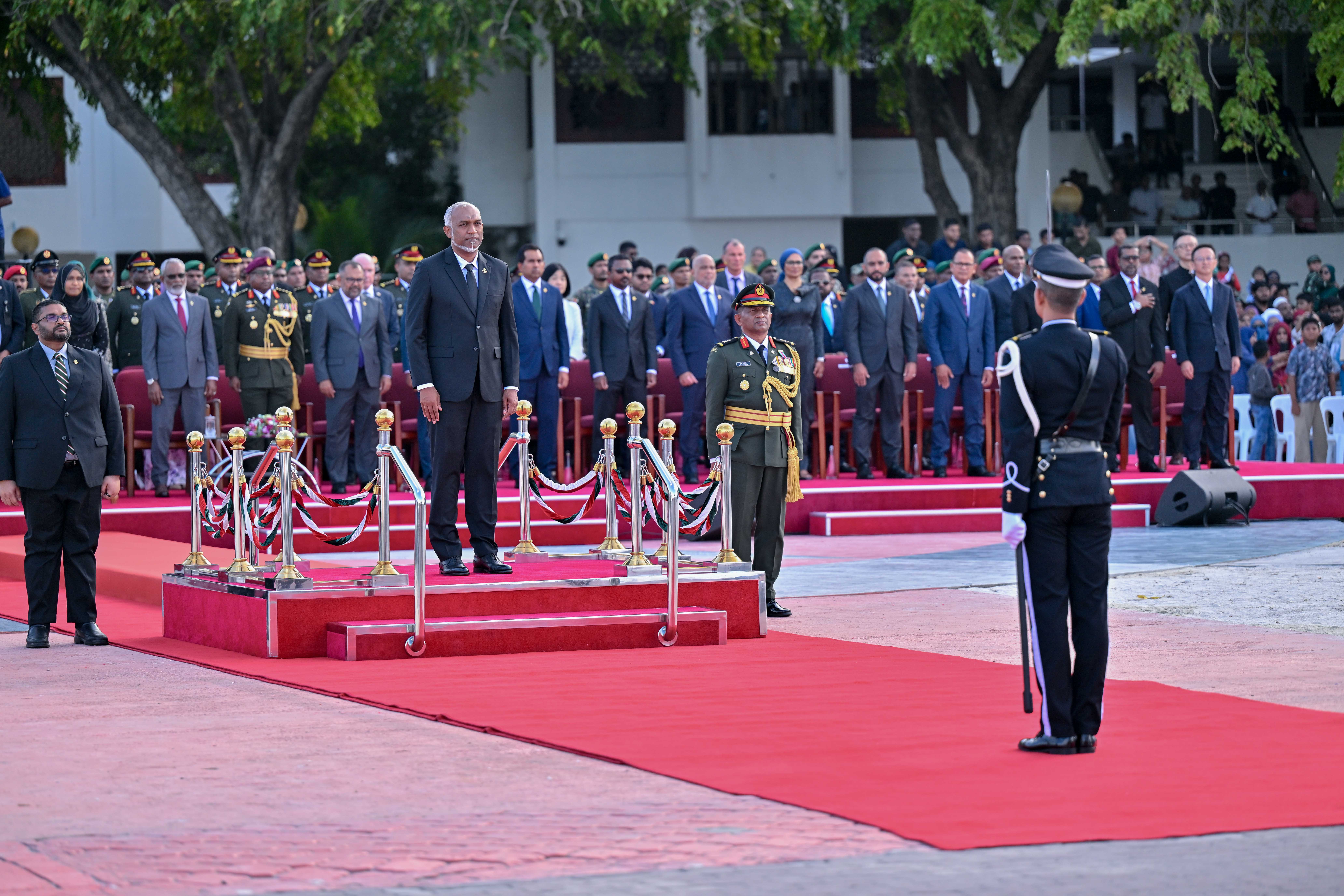 ނަޞްރުގެ ދުވަހުގެ މުނާސަބަތުގައި ދިވެހި ޤައުމީ ދިފާޢީ ބާރުން އިންތިޒާމުކުރި އަސްކަރީ ހުށަހެޅުމުގެ ޙަރަކާތް ރައީސުލްޖުމްހޫރިއްޔާގެ ދެކަނބަލުން ބައްލަވާލައްވައިފި