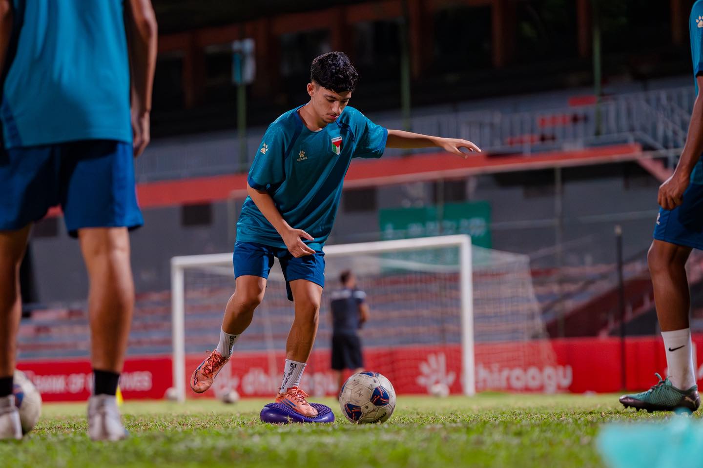 ފަލަސްތީނުގެ ޓީމް ރާއްޖެ އައިސްފައިމިވަނީ އޭޝިއަންކަޕް ކޮލިފައިންގައި އެޓީމް ކުޅެންޖެހޭ މެޗްގެ ކުރިން ތަމްރީނުތައް ހަދައި ރާއްޖޭގެ ޤައުމީޓީމާއެކު އެކުވެރިކަމުގެ މެޗްތަކެއް ކުޅުމަށެވެ. އޭއެފްސީ ކަޕް ކޮލިފައިން މެޗްތައް އޮންނާނީ މިމަހުގެ 22 އިން 30 އަށް ތައިލޭންޑްގެ ޗޮންބުރީގައެވެ.
