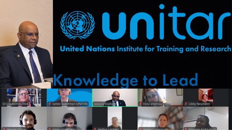 ޕްރޮފެސަރ ލިޒް ކޮލްޓަން އާއި ޔުނައިޓެޑް ނޭޝަންސް އިންސްޓިޓިއުޓް ފޯރ ޓްރޭނިންގ އެންޑް ރިސާރޗް (ޔުނިޓާ) އާއިއެކު ދުނިޔޭގެ އެކި ކަންކޮޅުތަކުން އައިސްތިބި ދަރިވަރުންނާ އެމްޑީޕީގެ ރައީސް އޮނަރަބަލް އަބްދުއްލާ ޝާހިދު މިއަދު ބައްދަލު ކުރައްވައިފިއެވެ.