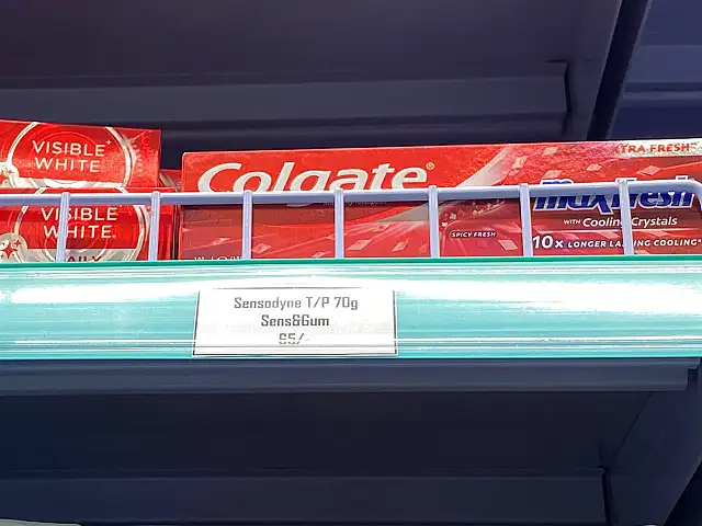 ސެންސޮޑައިންގެ 55ރ.ގެ އަގު ޓެގު މަތީގައި، 20 ވަރަކަށް ރުފިޔާއަށް ވިއްކާ ކޮލްގެޓު ފުޅިތައް ފޮނިވެލާފައި ޖައްސާލައިގެން އެ ތިބީ ދަތްޕިލަ އަތަށް ނަގައިގެންނެވެ. އެކަމަކު އެ ލޭބަލަށް ބަލައިފި މީހަކު ހިނިނައިސްފި ނަމަ އަންނާނީ ރުޅި އެވެ.