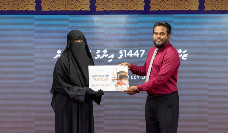 މޯލްޑިވްސް ޒަކާތު ހައުސްއިން ކުރިއަށްގެންދިޔަ “ޒަކާތު ކުއިޒް 1447″ގެ ނަސީބުވެރި ފަރާތާ އިނާމު ހަވާލުކޮށްފިއެވެ.