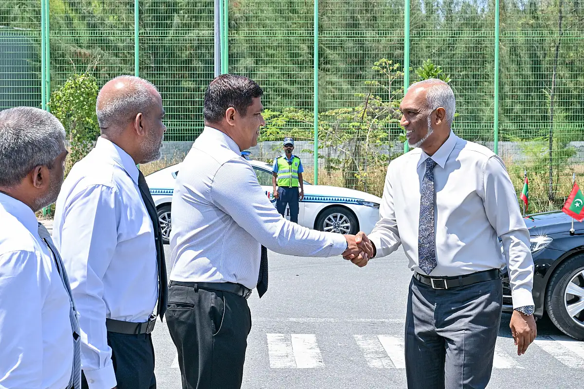 ވީ ކިހިނެއް؟ - ރައީސް މުހައްމަދު މުއިއްޒު ޝަރަފުވެރިކޮށްދެއްވި ރަސްމިއްޔާތުގައި ޕާކިން އިމާރާތުގެ ބިންގާ އަޅަައިދެއްވީ ޓްރާންސްޕޯޓު މިނިސްޓަރު މުހައްމަދު އަމީން އެވެ.