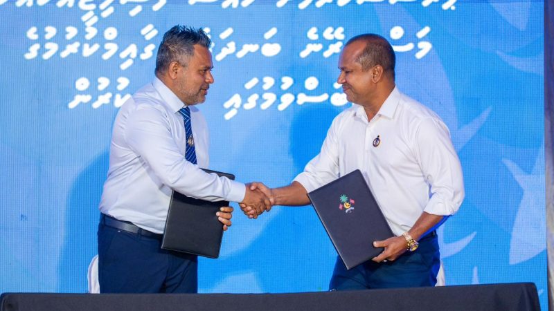 މި އެއްބަސްވުމުގައި ސޮއިކޮށްފައި ވަނީ ރ. ދުވާފަރުގައި ހޮނިހިރު ދުވަހުގެ ރޭ ކުރިއަށްދިޔަ ދިވެހިރާއްޖޭގެ 45 ވަނަ މަސްވެރިންގެ ދުވަހުގެ ރަސްމީ ޖަލްސާގައެވެ. މި ޖަލްސާގައި ރައީސް ޑރ. މުޙައްމަދު މުޢިއްޒު ވެސް ބައިވެރިވެވަޑައިގަތެވެ.