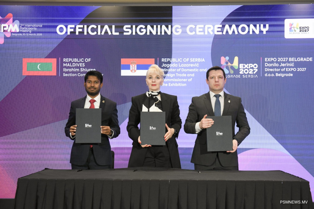 ވިޔަފާރީގެ ދާއިރާއިން ފާހަގަކޮށްލެވޭ ޚަބަރުތަކަށް ބަލާއިރު (14 މާރިޗު) ސަރބިއާގެ ބެލްގްރޭޑުގައި އަންނަ އަހަރު ކުރިއަށްގެންދިއުމަށް ހަމަޖެހިފައިވާ ބެލްގްރޭޑް އެކްސްޕޯގައި ބައިވެރިވުމަށް ވިޒިޓް މޯލްޑިވްސް ކޯޕަރޭޝަން، ވީއެމްސީން އެއްބަސްވުމެއްގައި ސޮއިކުރި ޚަބަރު ފާހަގަކޮށްލެވެއެވެ. ބެލްގްރޭޑުގައި ބޭއްވި ދެވަނަ އަހަރީ ޕްލޭނިން ބައްދަލުވުމެ ތެރެއިން ބެލްގްރޭޑް އެކްސްޕޯ 2027ގައި ބައިވެރިވުމުގެ އެއްބަސްވުމުގައި ވީއެމްސީގެ ފަރާތުން ސޮއި ކުރެއްވީ ސީއީއޯ އަދި މެނޭޖިންގް ޑައިރެކްޓަރު އިބްރާހިމް ޝިއުރީއެވެ.