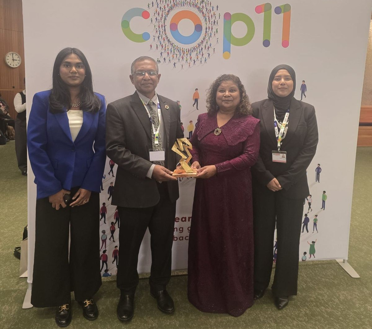 ރާއްޖޭގެ ފަރާތުން އެވޯޑާ ހަވާލުވެ ވަޑައިގެންނެނީ ޖެނީވާގައި ހުންނަވާ ދިވެހި ރާއްޖޭގެ ސަފީރު ޑރ.ސަލްމާ ރަޝީދުއެވެ.