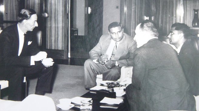 ފޮޓޯ : މިނިވަންކަމުގެ އެގްރިމެންޓްގައި ސޮއިކުރެއްވުމަށް ފަހު ބޮޑުވަޒީރު އިބްރާހިމް ނާސިރު އާއި އަބްދުއްސައްތާރު މޫސާދީދީ، އިނގިރޭސި ހައި ކޮމިޝަންގެ އިސް ބޭފުޅުންނާ އެކު
