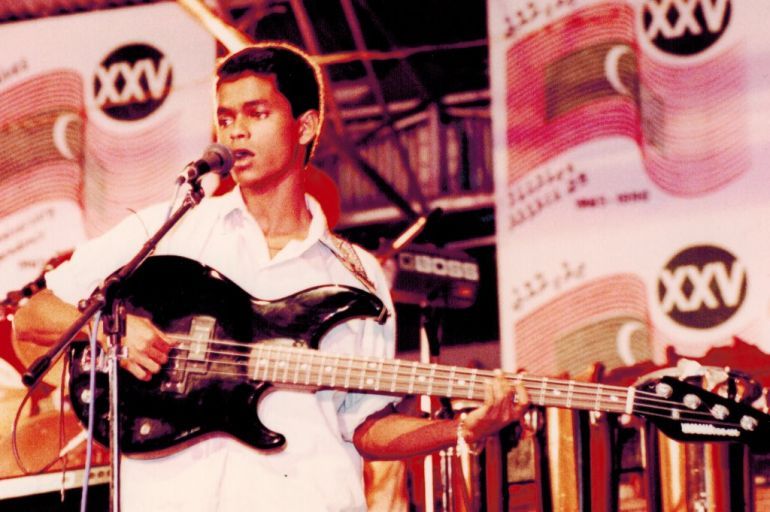 Shammoon said that just after graduation from Majeedhiyaa School, he worked with the marching band of Aminiya School on the school’s request. That was where he composed his first song. He said that even today, that song remains his favorite composition. This was what was developed into the now celebrated patriotic song “Maaiy vi Islam dheena qaumah takaa”. The lyrics were written by his brother and former cabinet minister Hamdhoon Hameed.