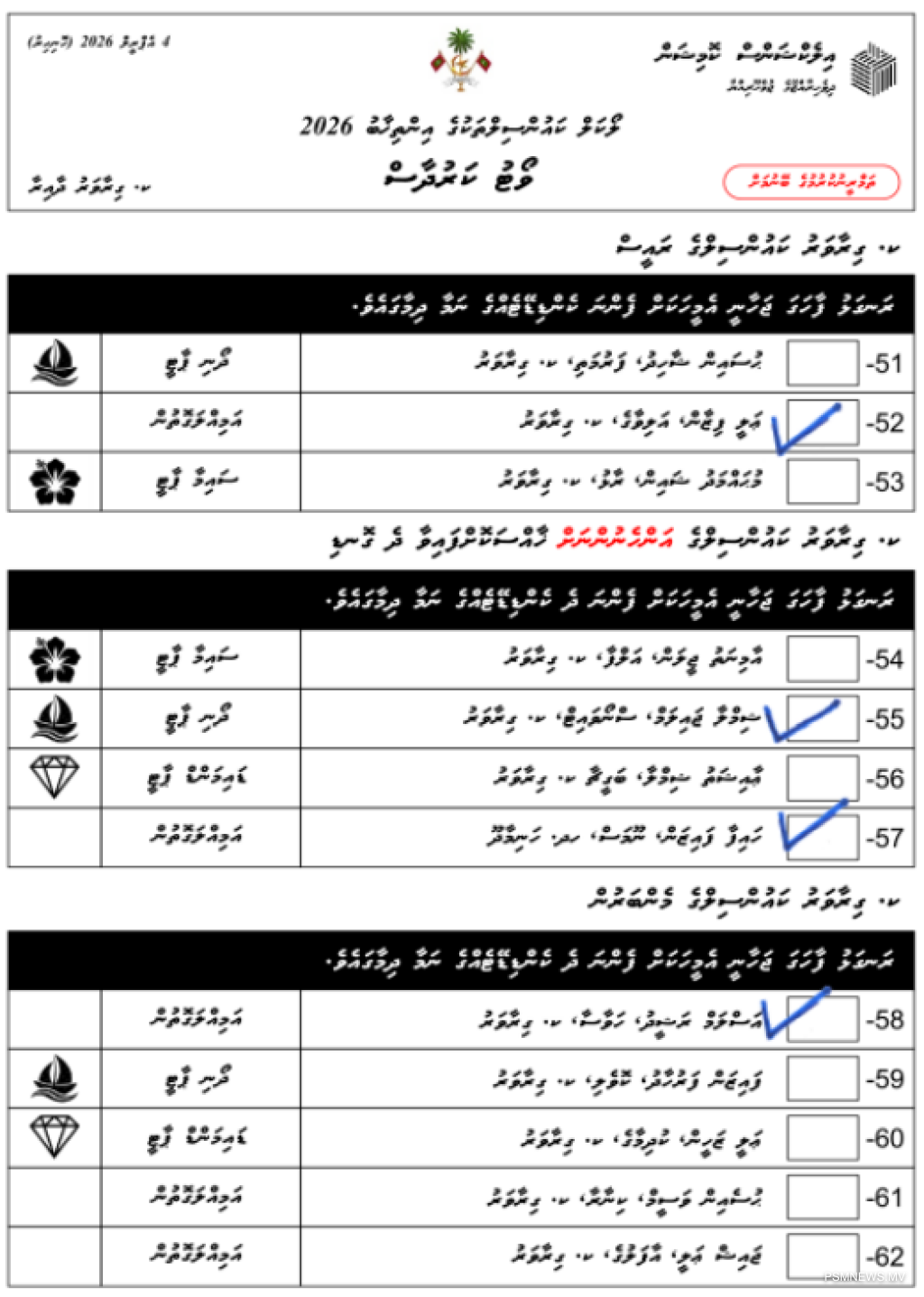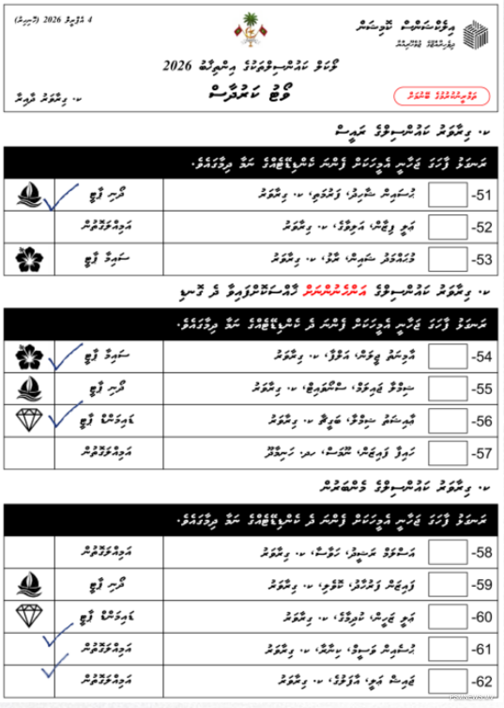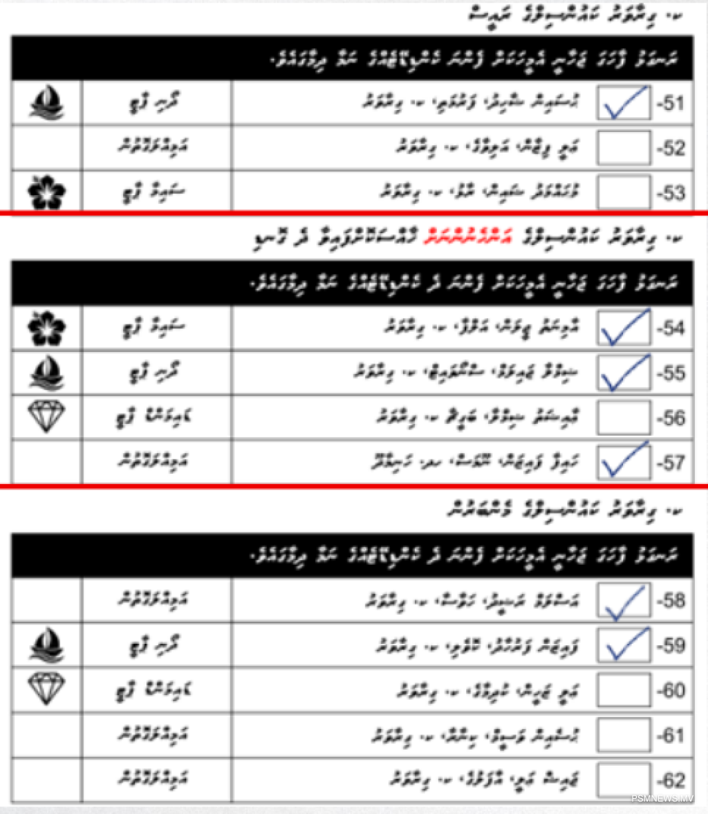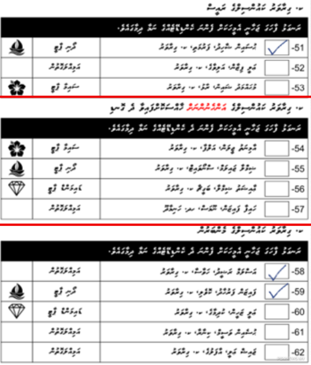• ވޯޓު ކަރުދާހުގައި އެއްވެސް ކެންޑިޑޭޓެއްގެ ނަމާ ދިމާލުގައި ފާހަގަޖަހާފައި ނުވާ ވޯޓު