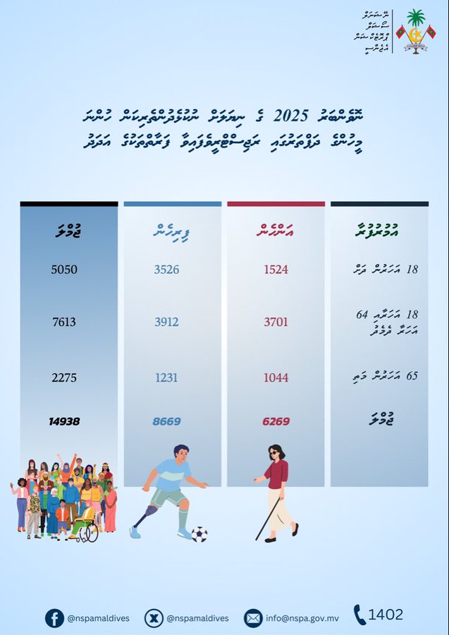 ނޮވެންބަރު 2025 ގެ ނިޔަލަށް ނުކުޅެދުންތެރިކަން ހުންނަ މީހުންގެ ދަފްތަރުގައި ރަޖިސްޓްރީވެފައިވާ ފަރާތްތަކުގެ އުމުރުފުރައިގެ ގިންތިއާއި އަދަދުވެސް އެންސްޕާއިން ވަނީ އާއްމުކޮށްފައެވެ.