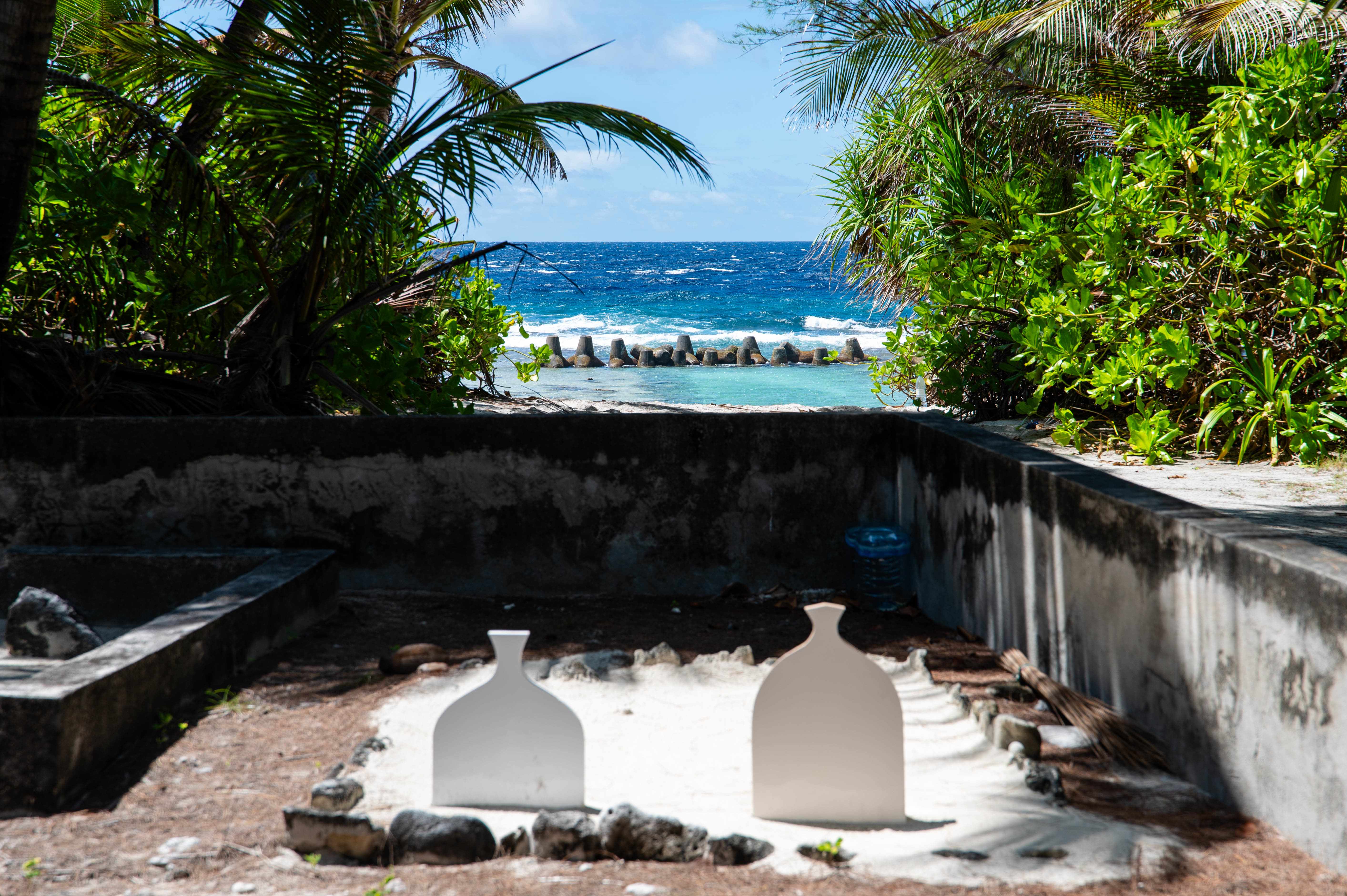 ފުވައްމުލަކު އަރުއްފަންނު ނެރުގެ އޮޔަށް ދަމައިގަނެގެން ގެނބުނު ބަޔަކު ވަޅުލާފައިވާ ގަބުރުސްތާނެއްގެ ފަހަތުން މިހާރު އެ ނެރު ބައްދާފައިވާ މަންޒަރު --- ފޮޓޯ: މުހައްމަދު ޝަރުހާން