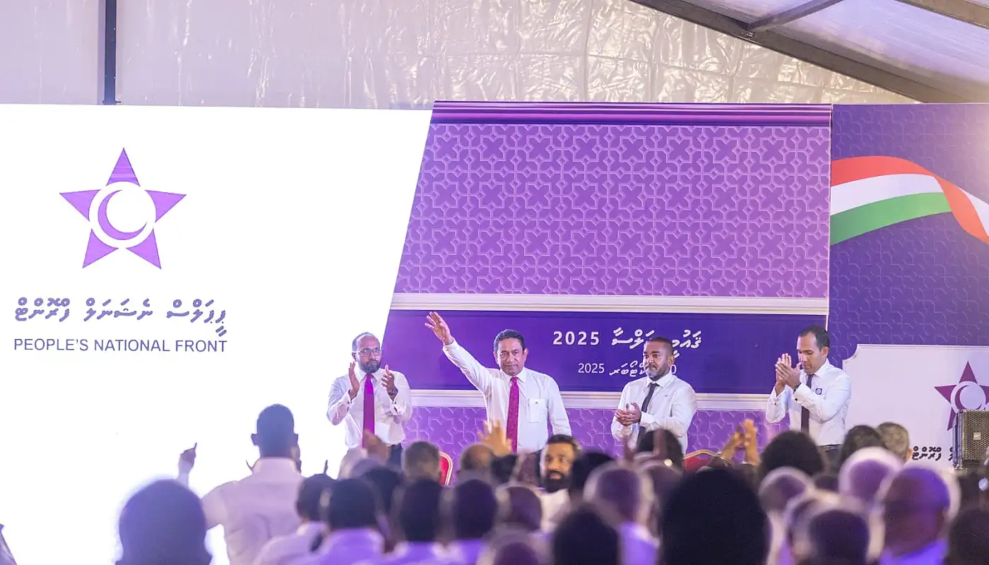 ވީކިހިނެއް؟ - ޔާމީން ހިމެނޭހެން މި ސަރުކާރު ގެންނަން އިސްކޮށް ތިބި ބަޔަކު ސަރުކާރުން ނުކުމެ އުފެއްދި، މިހާރު އިދިކޮޅު ޕާޓީއެއް ގޮތުގައި ހަރަކާތްތެރިވާ ޕީއެންއެފްގެ ޖަލްސާ އޮތީ އާޓިފިޝަލް ބީޗުގަ އެވެ.
