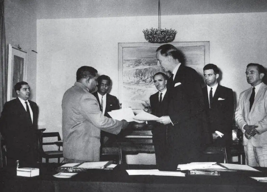 ވީކިހިނެއް؟ - 26 ޖުލައި 1965ގައި ދިވެހި މިނިވަންކަމުގެ އެއްބަސްވުމުގައި ސޮއިކުރުމުގަައި ބޭނުންކުރި ގޮނޑިތައް ދިވެހި ސަރުކާރާ ހަވާލުކުރުމަށް މިއަދު ފޮރިން މިނިސްޓްރީގައި ރަސްމިއްޔާތެއް ބޭއްވި އެވެ.