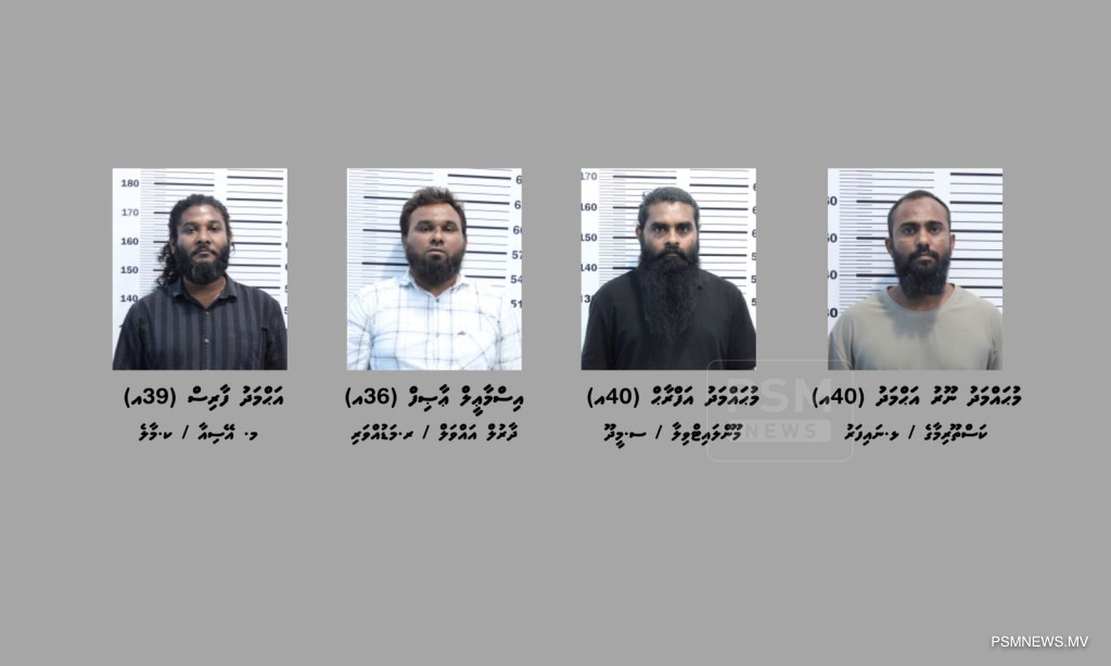 މި މައްސަލައިގައި ޖުމުލަ ފަސް މީހަކަށް ތުހުމަތު ކުރެވޭއިރު، އޭގެ ތެރެއިން ހަތަރު މީހަކު މިހާރު ތިބީ ފުލުހުންގެ ބަންދުގައެވެ. މި މައްސަލައިގައި ހައްޔަރުކޮށްފައިވަނީ ޅ. ނައިފަރު، ކަސްތޫރިމާގެ، މުޙައްމަދު ނޫރު އަޙްމަދު (40އ) އާއި، ސ. މީދޫ، މޫންލައިޓްވިލާ، މުޙައްމަދު އަފްރާޙް (40އ) އާއި، ރ. މަޑުއްވަރި، ދާރުލް އައްވަލް، އިސްމާޢީލް ޢާޞިފް (36އ) އަދި މާލެ، މ. އޭސިއާ، އަޙްމަދު ފާރިސް (39އ) އެވެ.
