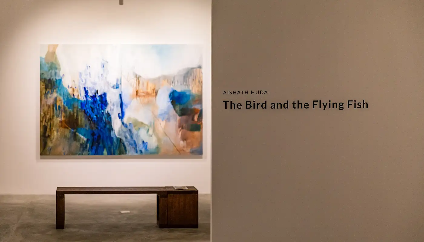 މިދިޔަ މަހު 24ގައި ގެލެރީ 350ގަ ހުޅުވި 'ދަ ބާޑް އެންޑް ދަ ފްލައިން ފިޝް' އަކީ ފައިން އާޓިސްޓު އައިޝަތު ހުދާގެ ކުރެހުންތައް ހިމެނޭ މައުރަޒެކެވެ. ދެ އަހަރު ދުވަހުގެ ތެރޭގައި ހުދާ ފުރިހަމަކުރި މި ކުރެހުންތައް ފުރަތަމަ ދައްކާލީ ގައުމީ އާޓް ގެލެރީގަ އެވެ. އެއީ މީގެ ހަ އަހަރު ކުރިންނެވެ. 2019ގައި އެ މައުރަޒު ހުޅުވުމުގެ ރަސްމިއްޔާތުގަ ބައިވެރިވެ، ހުދާގެ ފުރިހަމަ މަސައްކަތްތައް ފެނުނު ހަނދާން މިހާރު ވެސް އެބަ ހުއްޓެވެ. މި މައުރަޒުގެ މަސައްކަތްތައް އަނެއްކާވެސް ބަލައިލަން ފުރުސަތު ލިބުމުން ވަރަށް އުފާވި އެވެ. އެއީ އަދިވެސް އެހާމެ ފުރިހަމަ އަދި ބަލައިލުމުން ހިތަށް ފިނިކަމެއް ގެެނެސްދޭ ކުރެހުންތަކަކަށް ވީމަ އެވެ.