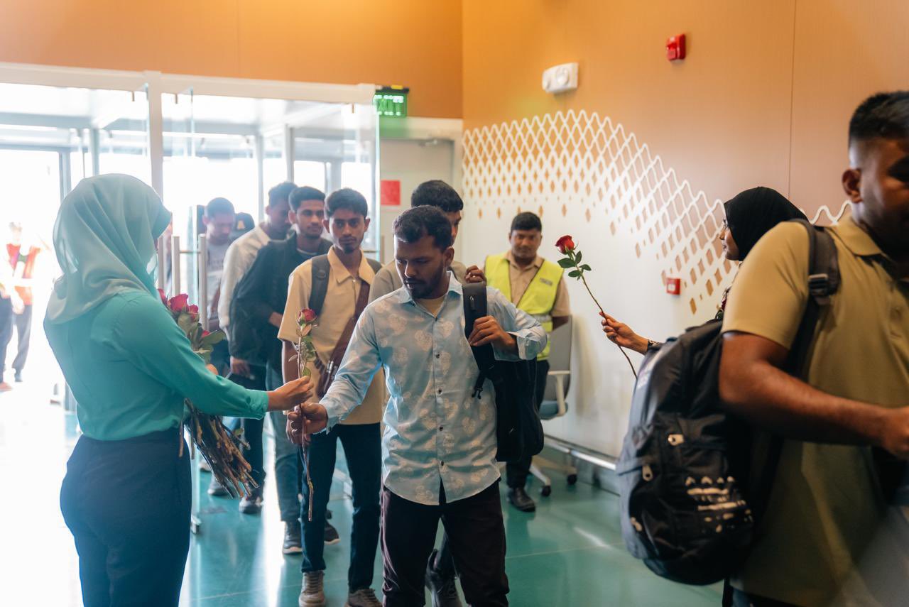 މޯލްޑިވިއަނުން ބަންގްލަދެޝްއަށް ސީދާ ދަތުރުތައް މިއަދު ފެށިއިރު، މިއަދު ރާއްޖެއައި ދަތުރުވެރިންނަށް ވެލާނާ އިންޓަރނޭޝަނަލް އެއާޕޯޓުން ވަނީ މަރުހަބާ ކިޔާފައެވެ.