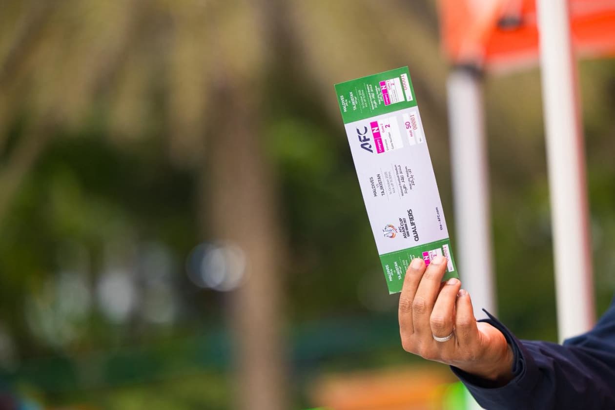 ރާއްޖެ އާއި ތަޖިކިސްތާން ކުޅޭ މެޗުގެ ޓިކެޓް.--- ފޮޓޯ: އެފްއޭއެމް