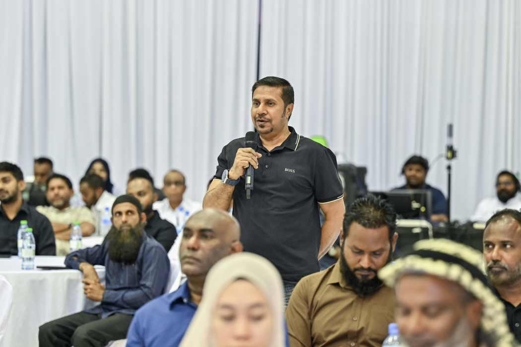 ކުދި އަދި މެދު ފަންތީގެ ވިޔަފާރިވެރިންނާއެކު މުއިއްޒު ރޭ ޒުވާނުންގެ މަރުކަޒުގައި ބޭއްވި ބައްދަލުވުމުގައި ބައިވެރިވި އިބްރާހިމް ނާޝިދު ބުނީ އޭނާއަކީ ސަރުކާރުގެ ބީލަންތަކުގައި މަސައްކަތް ކުރާތާ ވިއްސަކަށް އަހަރުވެފައިވާ ވިޔަފާރިވެރިއެއް ކަމަށެވެ.