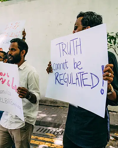 އެނގުން މުހިންމު - އިސްލާމީ ހުދޫދުގެ ބޭރުން ހިޔާލުފާޅުކުރުމުގެ މިނިވަންކަން ނުދެވޭނެ ކަމަށް ރައީސް ވިދާޅުވި އިރު، ނޫސްވެރިންގެ ކަންބޮޑުވުމަކީ ސަރުކާރާއި މަޖިލިސް ހިމެނޭ ގޮތަށް ސިޔާސީ ނުފޫޒު އޮންނަ ކޮމިޝަނަކުން މީޑިއާ ރެގިއުލޭޓް ކުރުމެވެ.