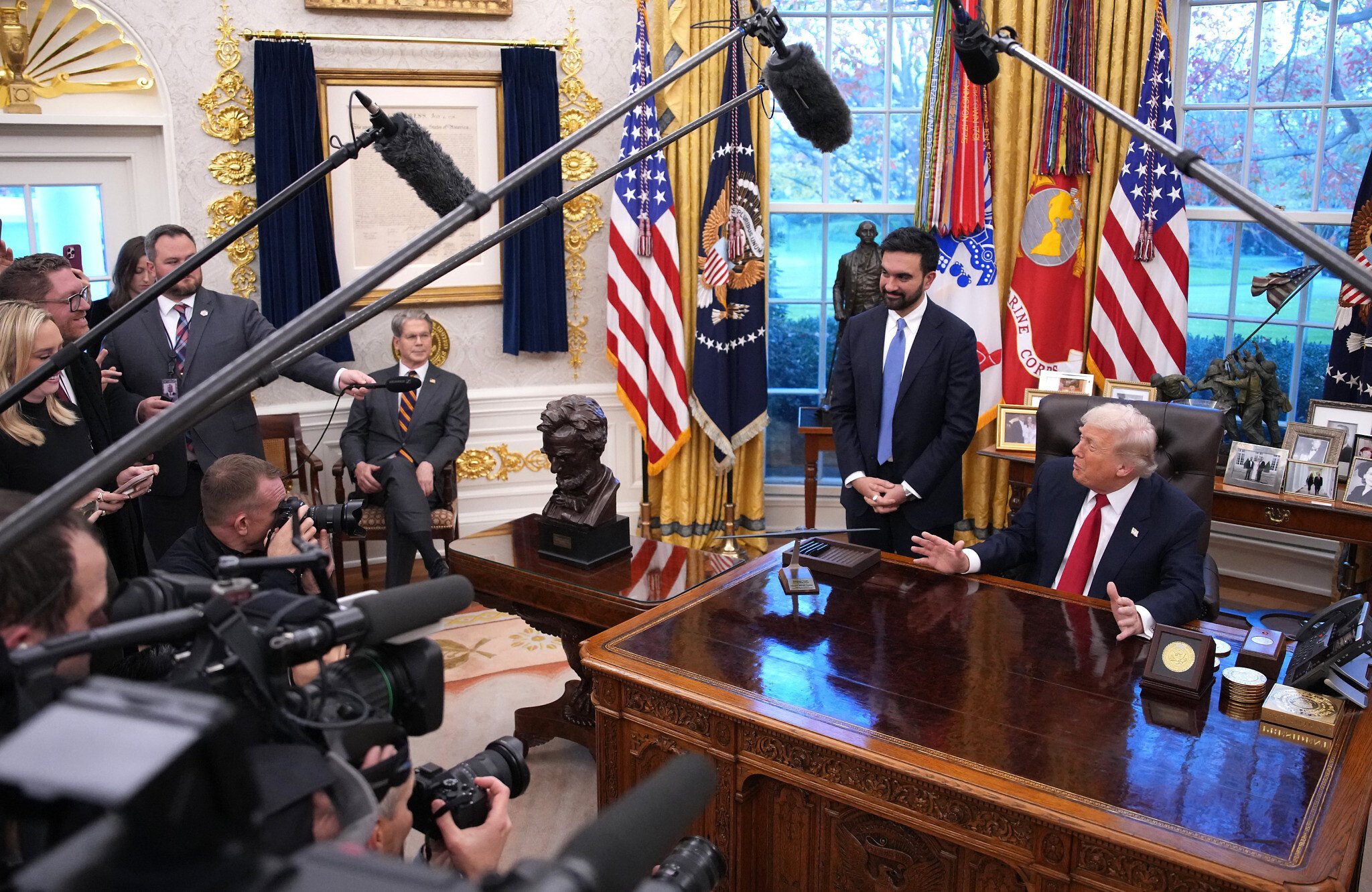 ވައިޓްހައުސްގައި ނިއުޔޯކްގެ މޭޔަރު މަމްދާނީ އާއި ޓްރަމްޕް ވަނީ ބައްދަލުކުރެއްވި ފޮޓޯތަކެއް މީޑިއާއަށް ތިލަވެގެންދިޔައިރު، ޓްރަމްޕް ވަނީ ނޫސްވެރިންނާ ބައްދަލުކޮށް އެ ބައްދަލުވުމުގެ މައުލޫމާތު ހިއްސާކުރައްވާފައެވެ.