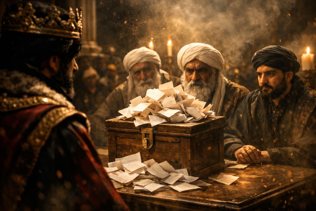 ތިން ޝޭޚުން ހާޒިރުވުމުން ރަސްގެފާނު ސުވާލުކުރެއްވިއެވެ. އިންތިހާބެއްގައި ވޯޓު އޮޅުވާލުމުގެ ހުކުމަކީ ކޮބާތޯއެވެ؟ ފުރަތަމައަށް ހުރި ޝޭޚް ދެންނެވިއެވެ. އިއްޒަތްތެރި ރަސްގެފާނެވެ. އެޔަކީ ހަގީގަތުގައި ކޮށްގެންވާނެ ކަމެއް ނޫނެވެ. އެހުންނަނީ ވަރަށް ބޮޑެތި މަނާ ކަންތަކެވެ. އެފަދަ ކަންކަން ހުއްދަވެގެންވަނީ ވަރަށްވެސް ނާދިރު ހާލަތްތަކުގައެވެ. ދުނިޔޭގެ ކުރިއަރާފައިވާ ތަހުޒީބު ގައުމުތަކުގައިވެސް އެކަންކަމަކީ ވަރަށް އިސްތިސްނާއީ ގޮތެއްގައި މެނުވީ ހުއްދަކުރެވޭ ކަންކަމެއް ނޫނެވެ. އެހެންނަމަވެސް އިއްޒަތްތެރި މަނިކުފާނުގެ އިންޓެލިޖެންސް ޑިޕާޓްމަންޓުން އެގޮތަށް އެކަން ކުރުމަށް އެދޭކަމަށްވާނަމަ އެކަމަކީ ހުއްދަ ކަމެކެވެ. އެހެނީ އެހާލަތަކީ އިންތިހާބެއް އޮޅުވާލުން ހުއްދަކުރެވިގެންވާ ހާލަތެއްކަމުގައި ނިކަމެތި އަޅާއަށް ފެނެއެވެ. އަދި އެހާލަތުގައި އިންތިހާބެއް އޮޅުވާލަނީ ހެޔޮ ނިޔަތުގައި ކަމަށްވާނަމަ، އެކަމުގައި މަނިކުފާނުގެ މައްޗަކަށް އެއްވެސް ފާފައެއް ނެތެވެ.