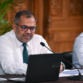 ވަޒީރު މިހެން ވިދާޅުވީ، ރައީސް އޮފީހުގައި ބޭއްވި ނޫސްވެރިންގެ ބައްދަލުވުމުގައި ވާހަކަފުޅު ދައްކަވަމުންނެވެ.