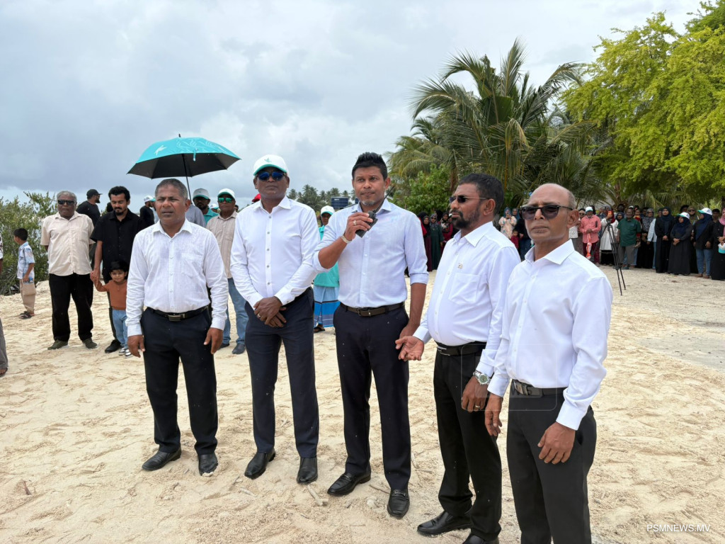 ރައީސުލްޖުމްހޫރިއްޔާ ޑރ. މުޙައްމަދު މުޢިއްޒު މަޑަވެއްޔަށް ވަޑައިގެން އެރަށު ރައްޔިތުންނާއި ބައްދަލުކުރައްވާ ދެއްކެވި ވާހަކަފުޅުގައި އެރަށުގެ ރައްޔިތުން އެދިވަޑައިގަންނަވާ ގޮތަށް، ބިން ހިއްކުމާއި ގޮނޑުދޮށް ހިމާޔާތްކުރުމުގެ މަޝްރޫއުގެ އަމަލީ މަސައްކަތް ފައްޓަވާދެއްވާނެ ކަމަށް ވަނީ ވިދާޅުވެފައެވެ. އަދި މި މަޝްރޫޢުގެ އަމަލީ މަސައްކަތް މިއަދު ފެށިގެންދިއުމަކީ އެރަށު ރައްޔިތުންނަށް ލިބިގެންދިޔަ ވަރަށް ބޮޑު އުންމީދެކެވެ.